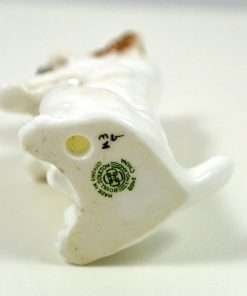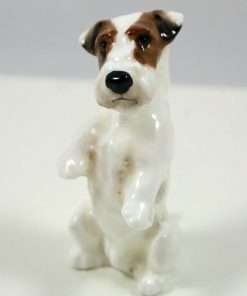 Great things come in small packages, and this adorable Sealyham Terrier pup is no exception. Up on his hind legs as though to show off every inch of his diminutive size, he stands 2 3/4″ tall x 1 1/2″ long x 1″ wide. He was created by Royal Doulton in Stoke-on-Trent England beginning in 1931 and retired in 1977. He has been hand painted in a bright, creamy white, with touches of black and caramel, and completed in a perfect glossy finish. He makes the perfect desk companion with his engaging pose and expression. As one of the Royal Doulton K-Series, he is highly collectible!