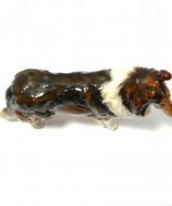 This exquisite, Royal Doulton Collie dog was modeled after a noted champion Collie, “Ashtead Applause”, who was owned by a Mr. Roberts c. 1935. A photo of this champion Collie was published in Hutchinson’s Dog Encyclopedia around that time.