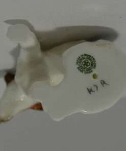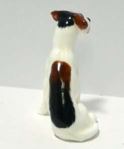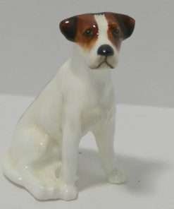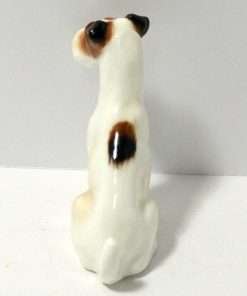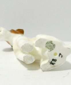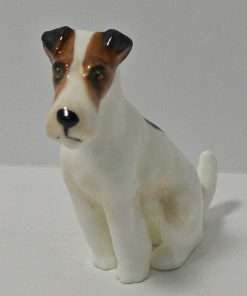 These sweet, “best friends”, porcelain Fox Terrier and Jack Russell Terrier pups came to us as a pair, and we would like to see them kept that way. They were made by Royal Doulton between 1931 – 1977, and they are marked K8 and K7 along with the Royal Doulton factory mark. The Fox Terrier pup measures 2 1/2″ tall x 2 1/2″ long x 3/4″ wide. The Jack Russell Terrier pup measures 2 1/4″ tall x 2 ” long x 1 1/2″ wide. Both are in excellent condition, and this engaging pair would make a wonderful addition to a Royal Doulton canine collection, or a unique and generous gift to your favorite canine enthusiast.