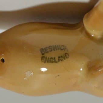 This model #1786A, was designed by Arthur Gredington. for Beswick Pottery in Longton, Stoke-on-Trent, England. It was first issued in 1961. Measuring 4 1/2″ tall x 5 1/2″ long x 1 3/4″ wide, it is in excellent condition.