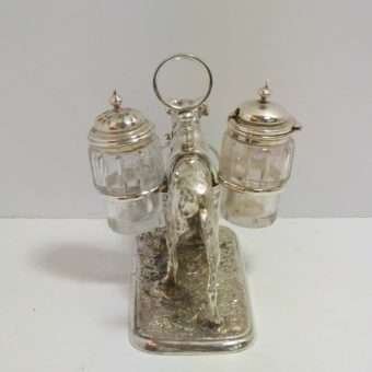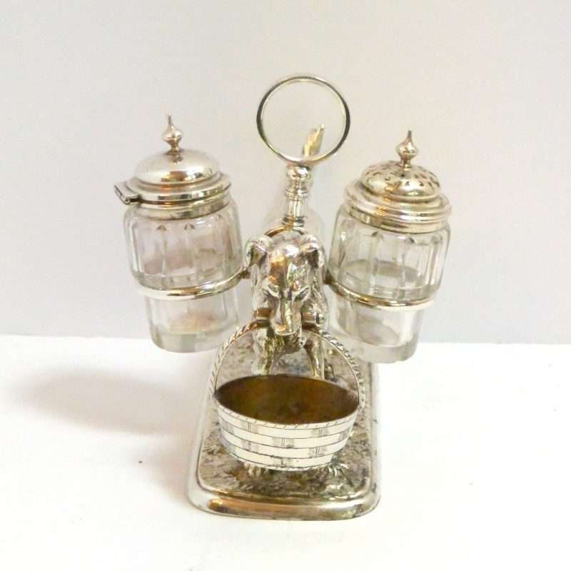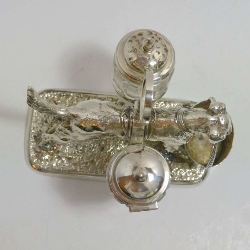 Victorian Silverplate Dog Cruet Set c. 1875
