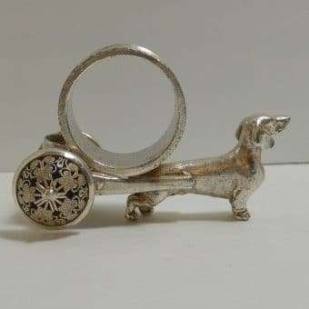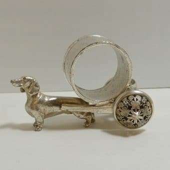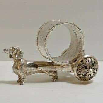 Please note that we have a total of four silverplate figural dog napkin rings, each one different, currently in the shop. Each one is equally beautiful.