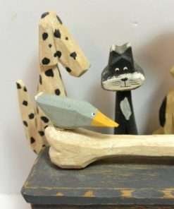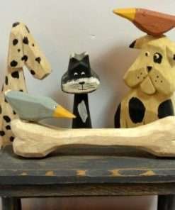 Folk Art Carved Wood Dogs, Cat and Birds