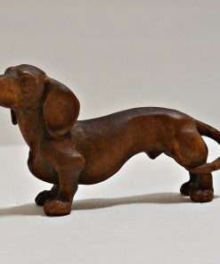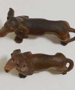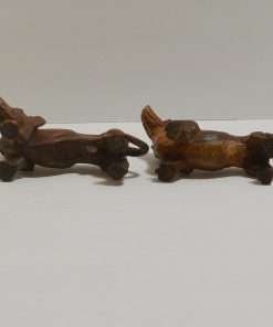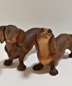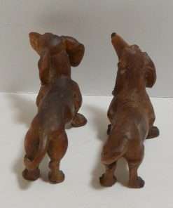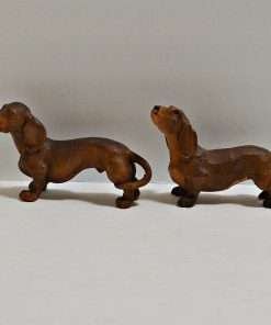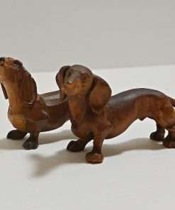 The female measures 2 1/2″ tall x 3″ long x 1 1/4″ wide, and both of these wonderful wood Dachshund figurines are in excellent condition.