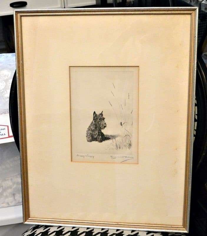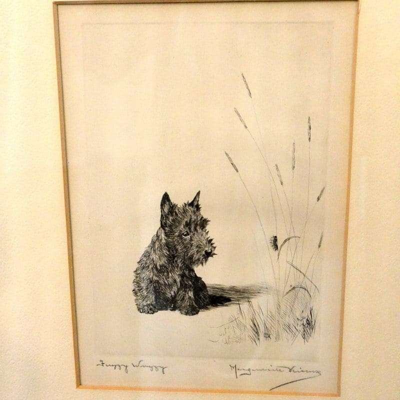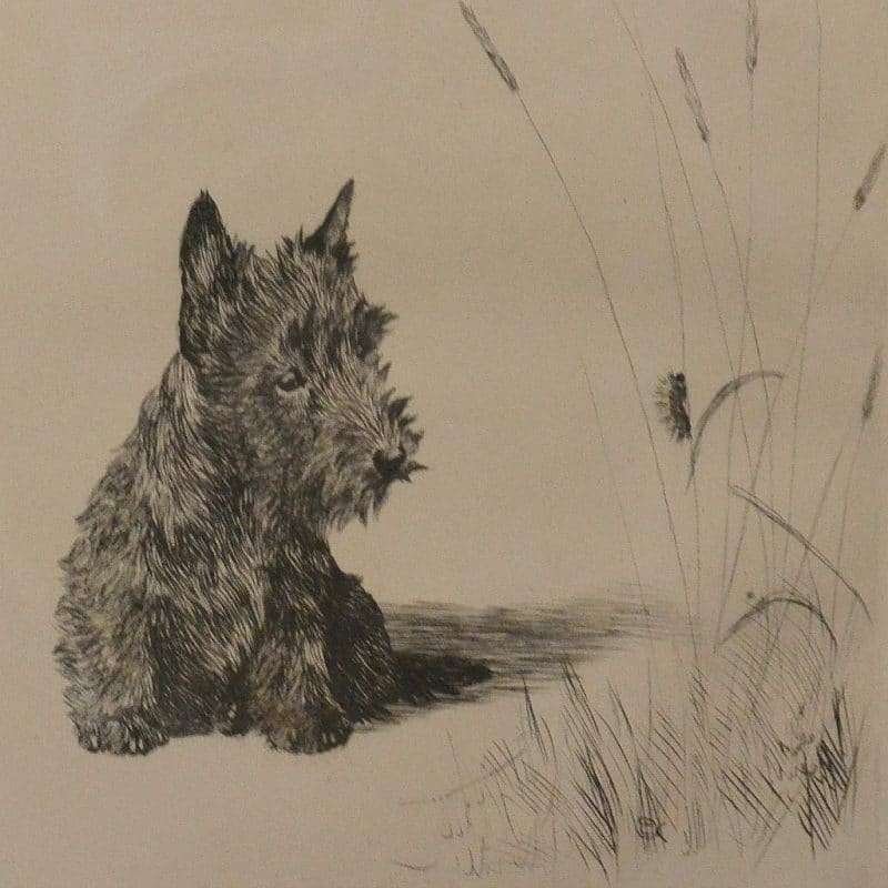 This original etching is of a Scottish Terrier puppy who has discovered a caterpillar climbing on a stem of grass. It was first published in 1929.