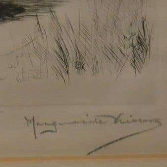 This etching is penciled signed on the bottom right side of the etching, and it is titled “Fuzzy Wuzzy” on the lower left side of the etching.