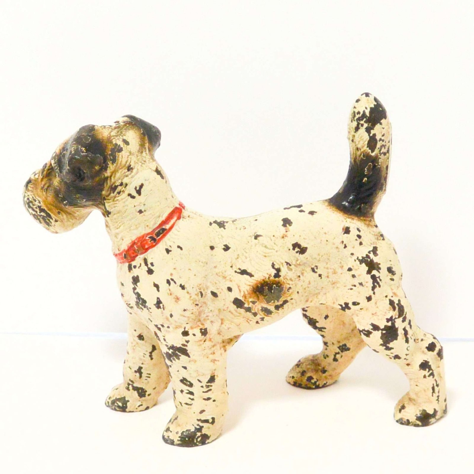 This Hubley Cast Iron Standing Fox Terrier Dog might be small, but he has a large personality.