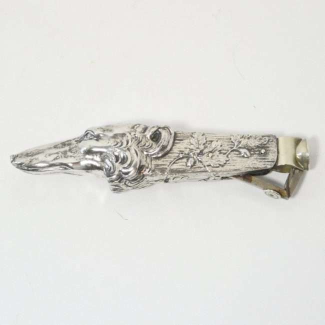 Art Nouveau Silverplate Borzoi Russian Wolfhound Cigar Cutter c.1890