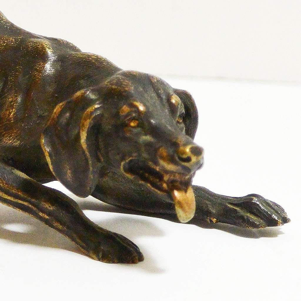 This wonderful bronze Pointer dog figurine has all the exquisite detailing of a larger bronze, in a smaller size.