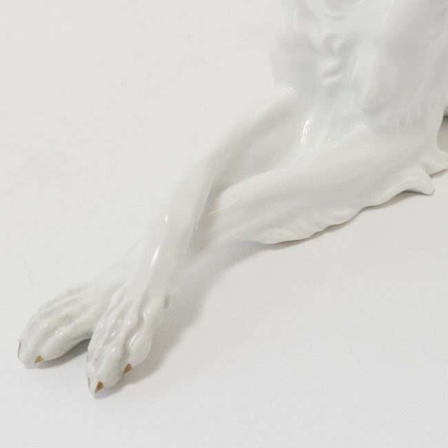 This exquisite Borzoi dog figurine was made in the Augarten Porcelain factory in Vienna, during the original period.