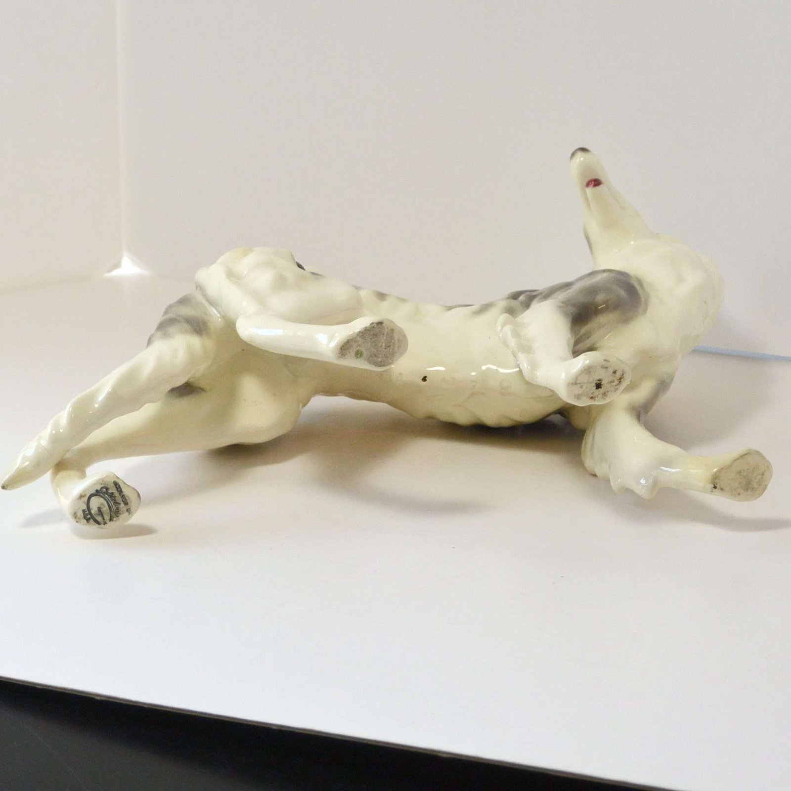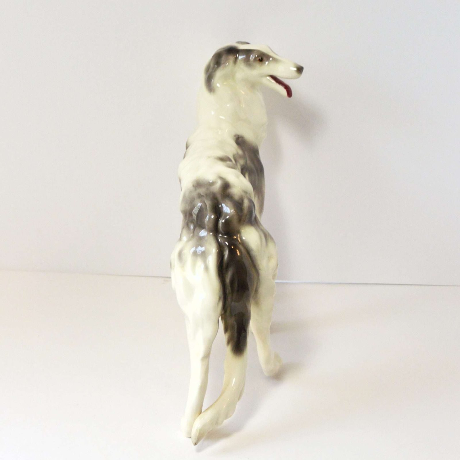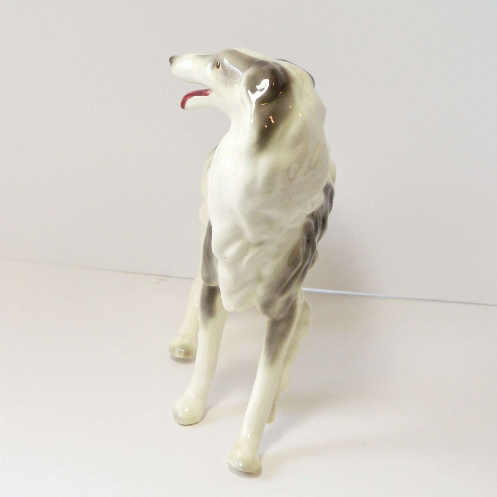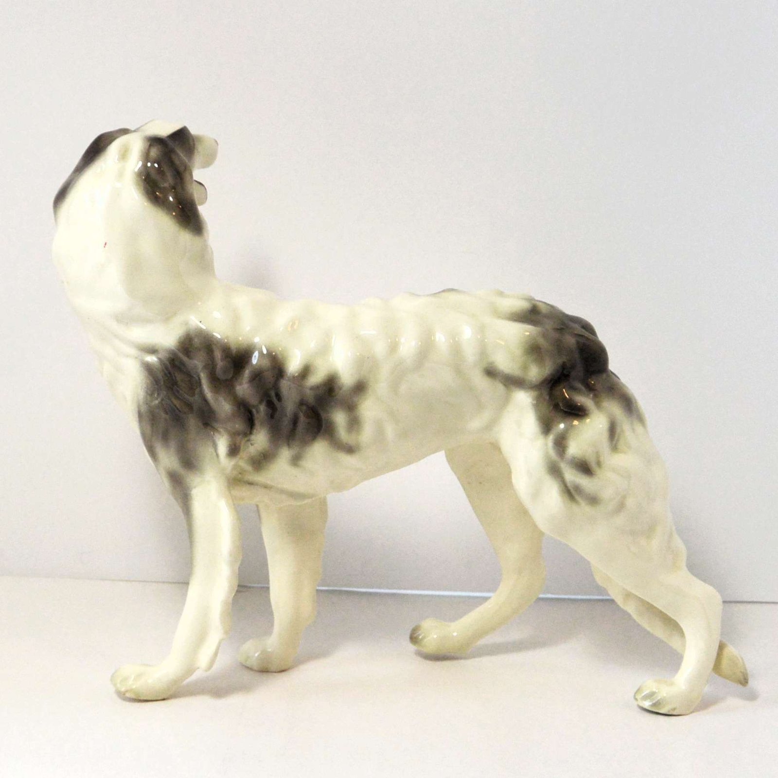 She is one of the “harder-to-find” vintage porcelain Borzoi figurines, which measures a full 9 1/2″ tall x 11″ long x 2 1/2″ wide.