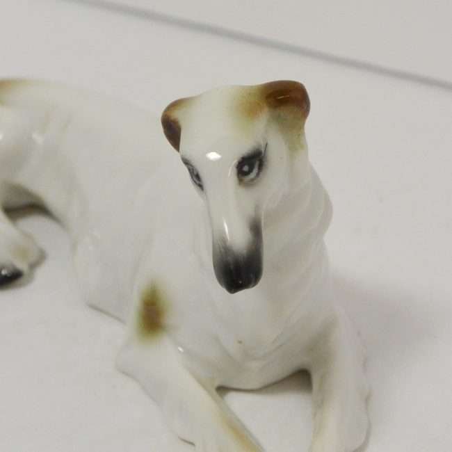 She is one of the hard-to-find Sitzendorf Borzois, and she is not only exquisite, but she is also a highly collectible, antique porcelain Borzoi figurine.