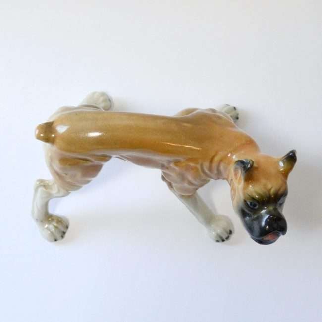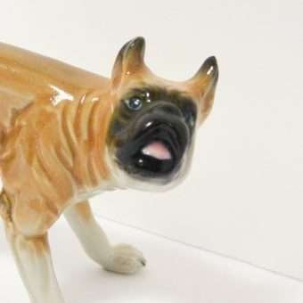 This German Porcelain Boxer dog figurine shows him standing in a way that any Boxer lover would immediately recognize.