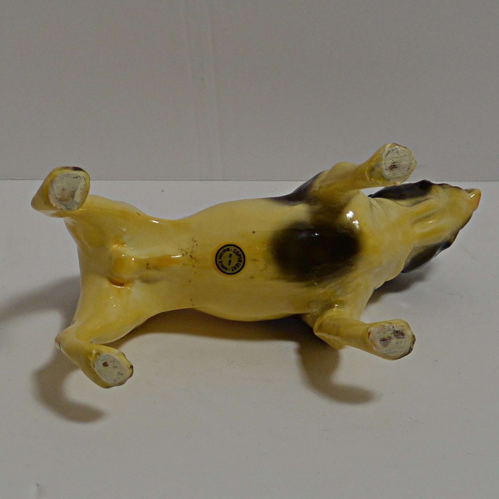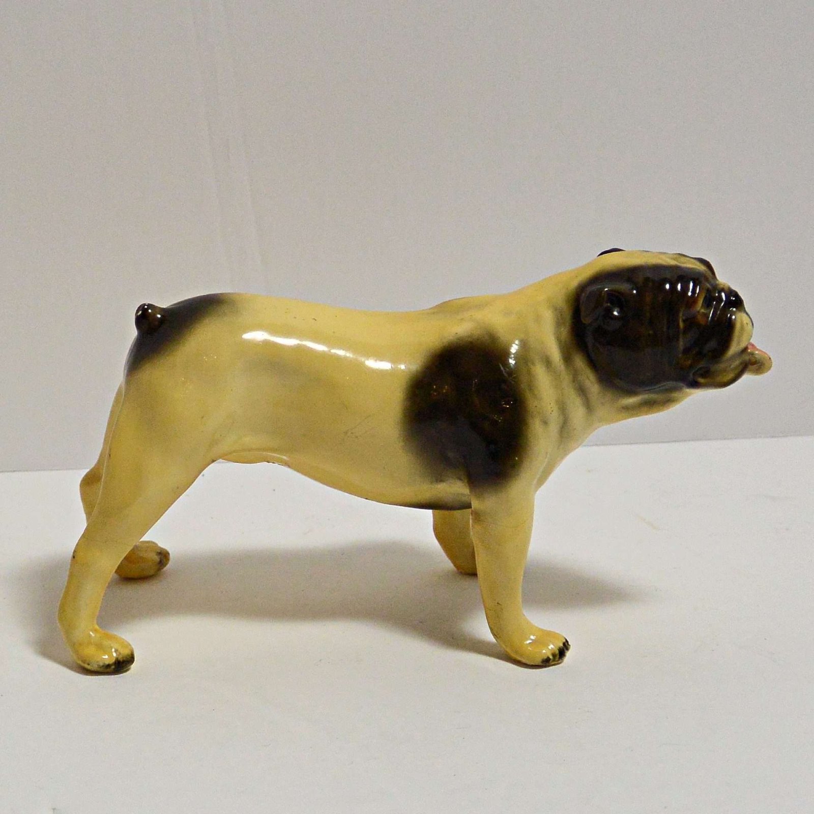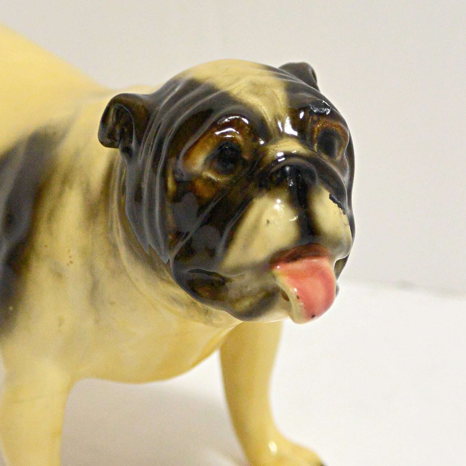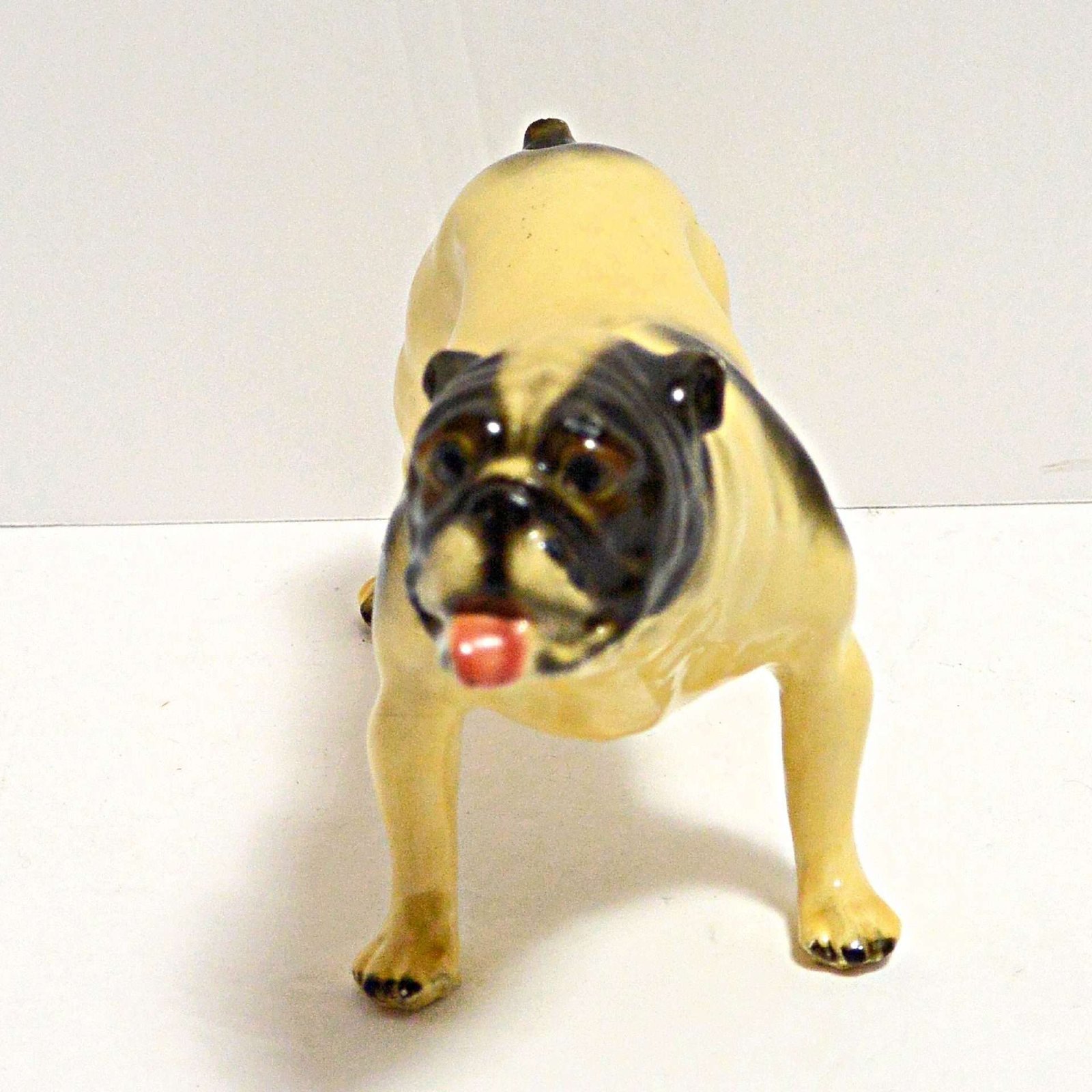 This wonderful, standing Bulldog was designed and produced by Mortens Studio. At 3 1/2″ tall x 5 3/4″ long x 2 3/4″ wide, he has fabulous detailing, showing bright, inquisitive eyes, characteristic “droopy jowls”, and a wide pink tongue.
