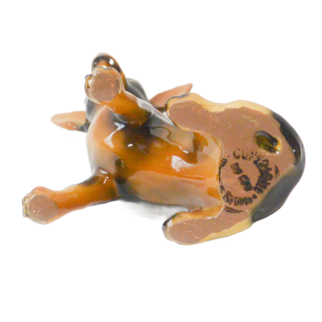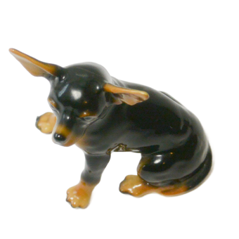 This Mortens Studio Chihuahua dog measures 3 1/2″ tall x 3 1/2″ long x 2″ wide. It is in excellent condition with no visible flaws. That is quite remarkable for a Mortens Studio figurine.