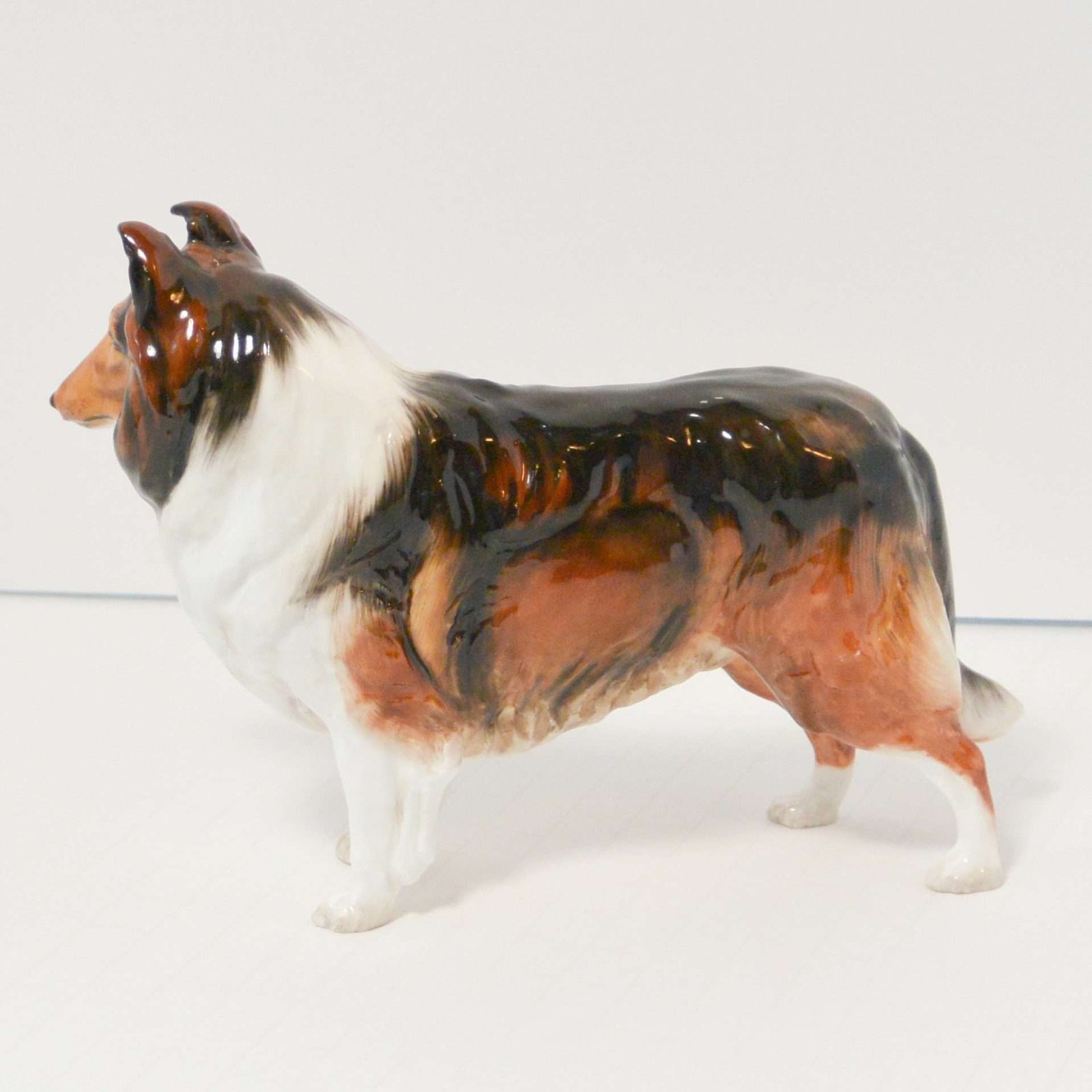 It is one of Royal Doulton’s most beautiful dog figurines. The fur lines on this Collie are exquisitely done, making this porcelain dog figurine look almost real. If you look closely, you will see that the eyes on this dog, are not only gorgeous, but they capture the gentle, sterling character of this fabulous breed.