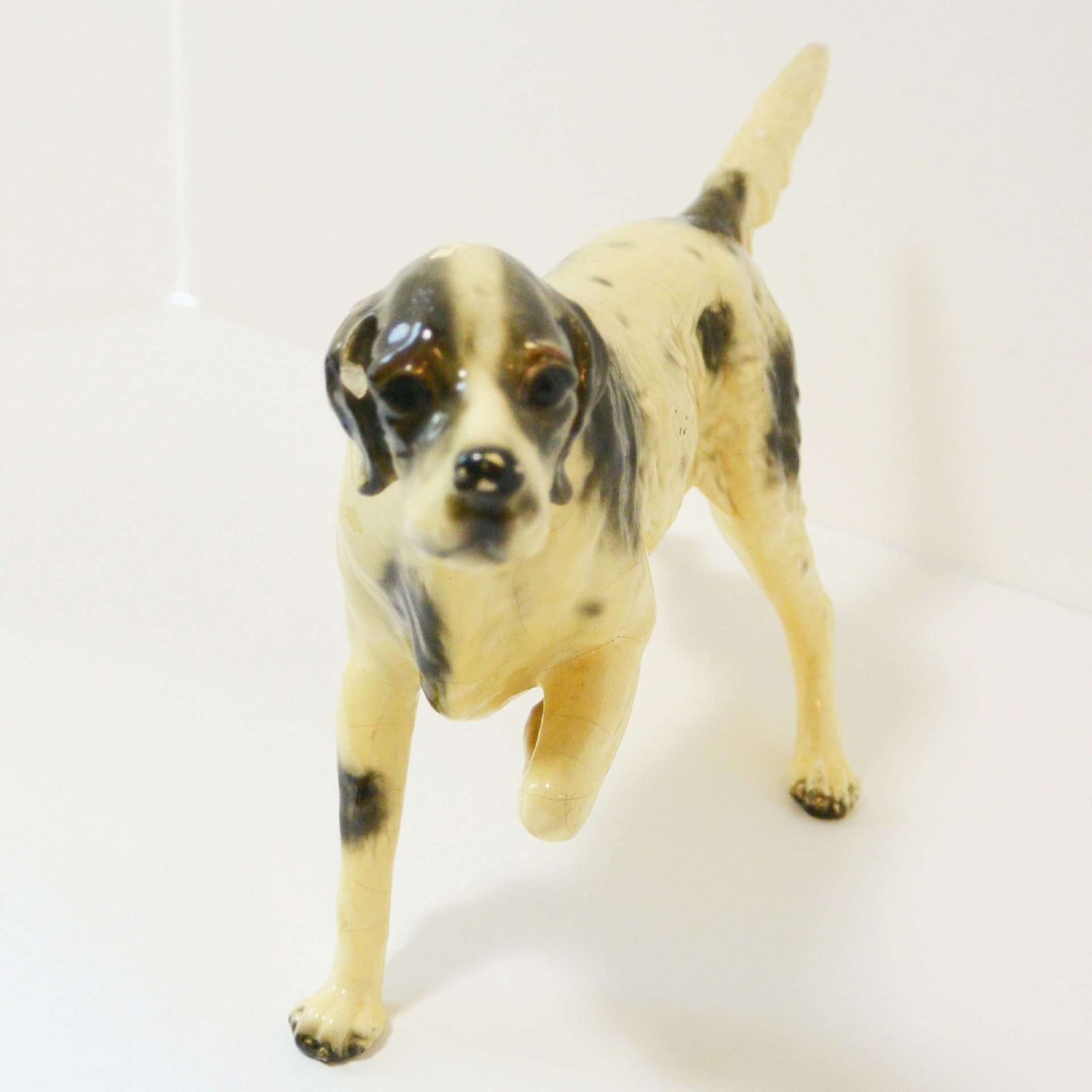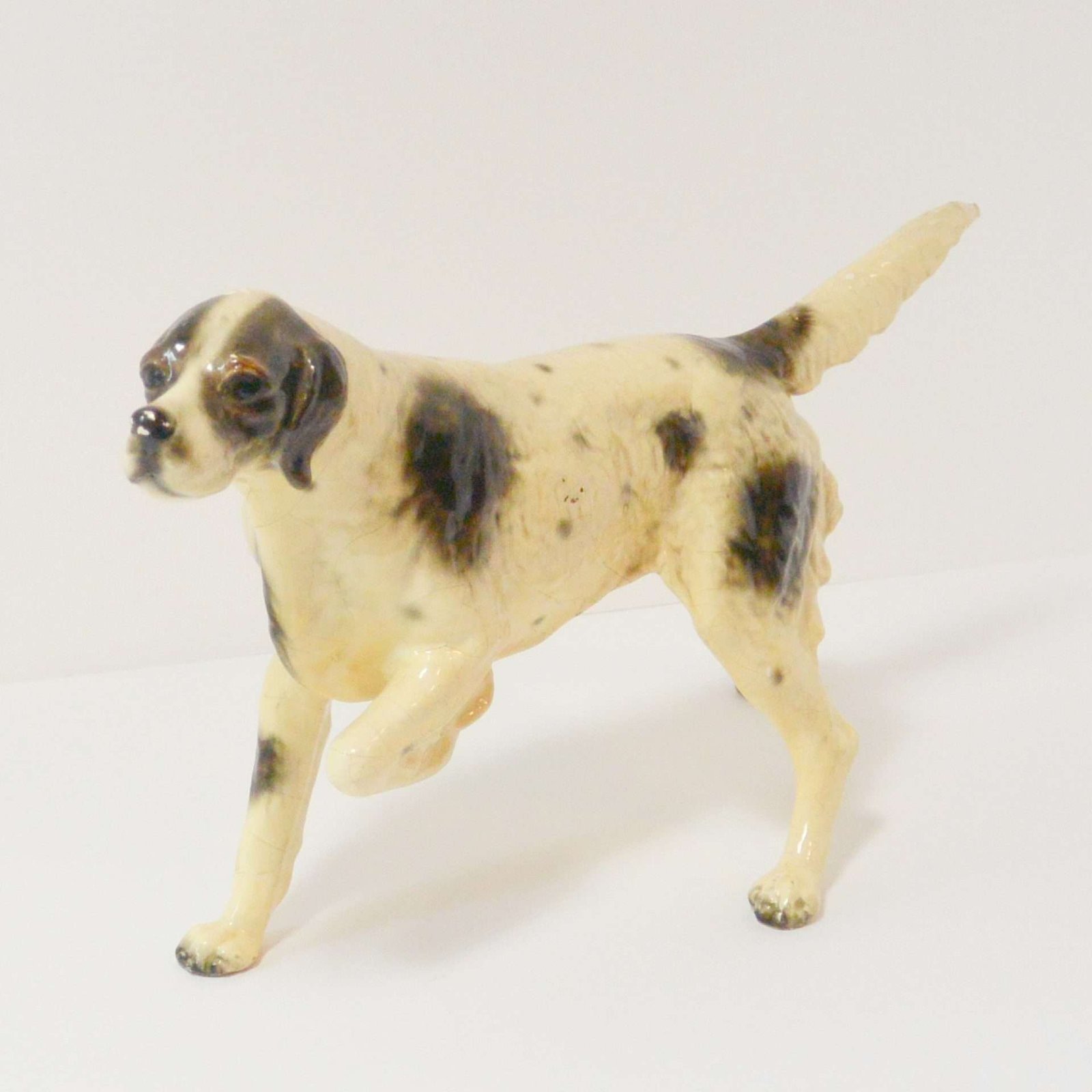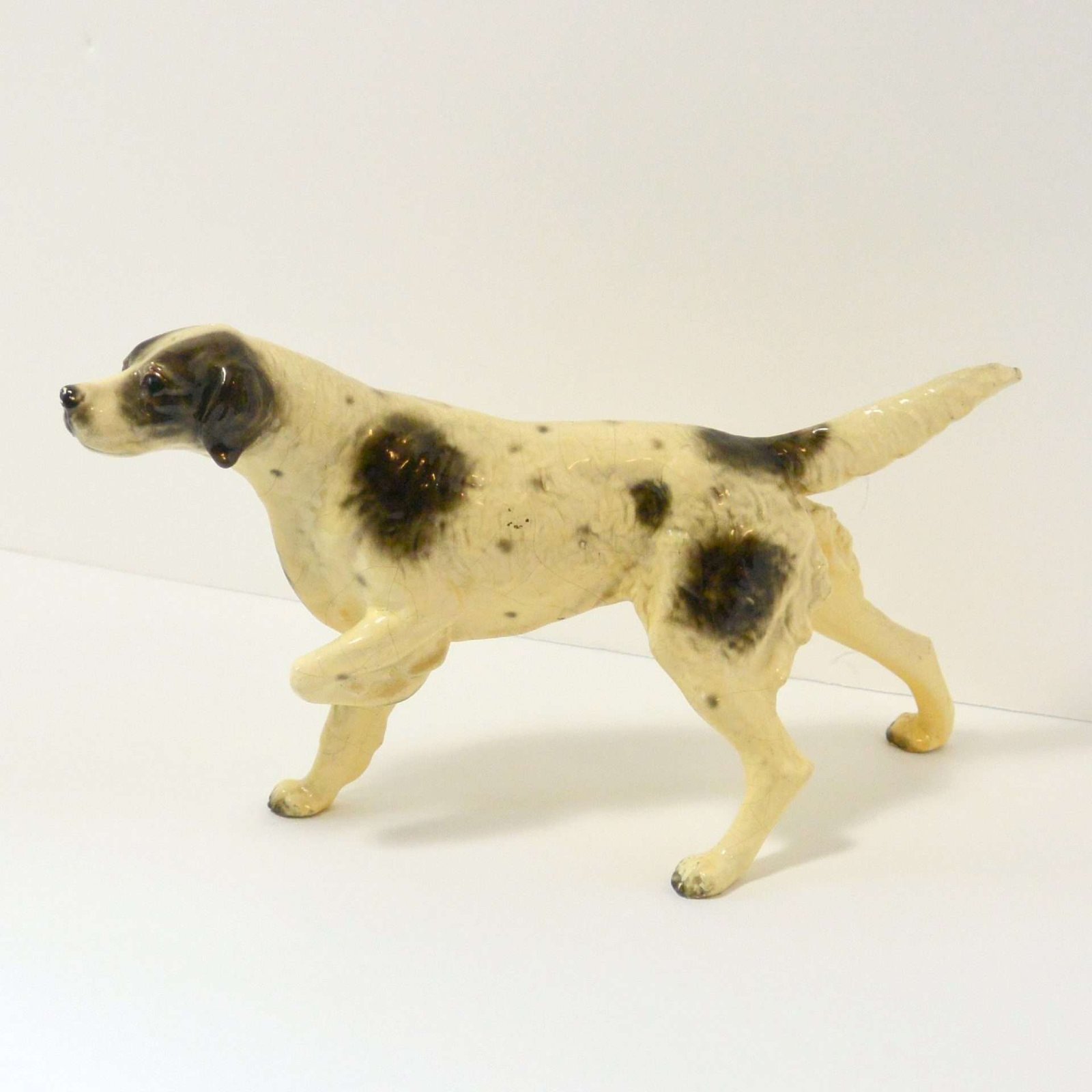 This elegant English Setter dog figurine is in great vintage condition with a small chip on the top of her tail, one on the inside of her ear, and one one the tip of her tail.