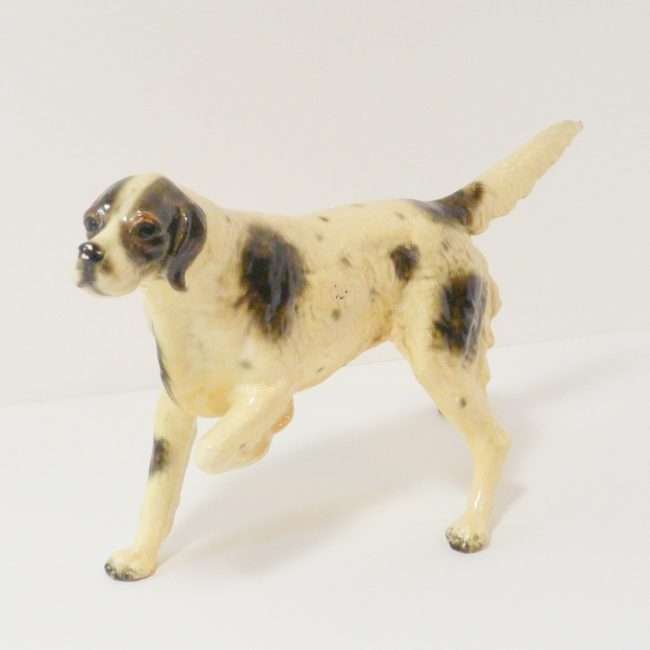 This Mortens Studio English Setter Dog is poised to hunt, with one paw up and her focus straight ahead.