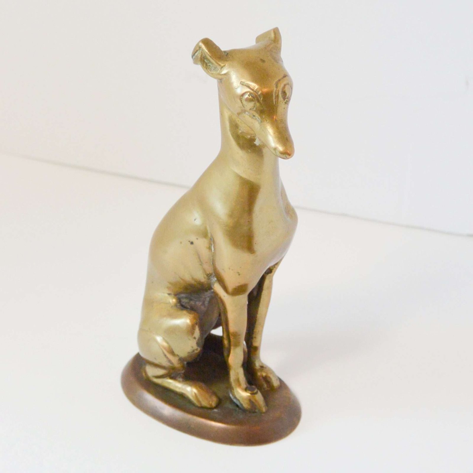 While it does show signs of wear, it is still an elegant brass representation of this breed, by a well-known company which produced highly sought after decorative pieces.