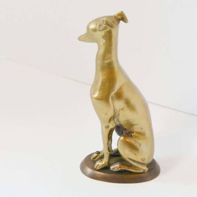 This wonderful, brass Whippet figurine was made by Mottahedeh Company of Portugal.