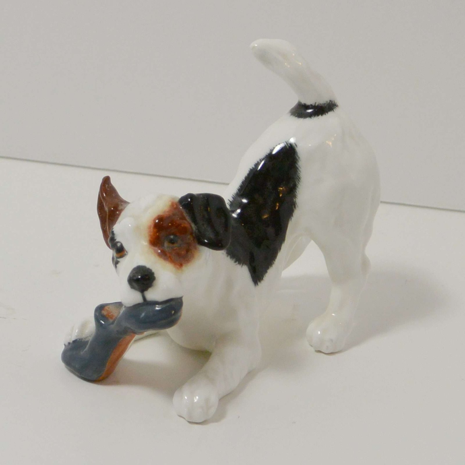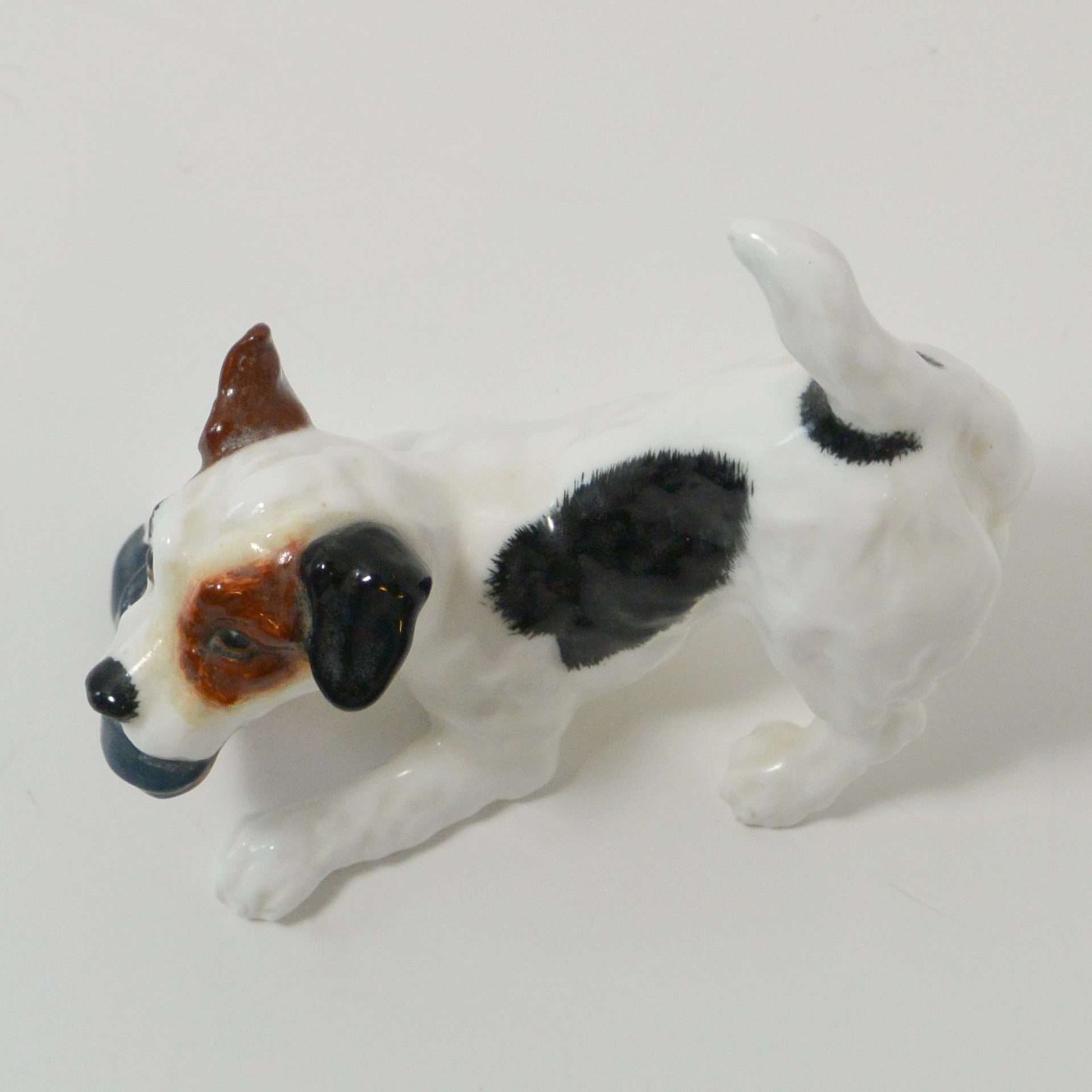 This wonderful pup has a perfect high gloss finish, and bears the green Royal Doulton backstamp and the mold # H.N. 2654. He is in excellent condition and stands 3 1/2″ tall x 4″ long x 2″ wide.
