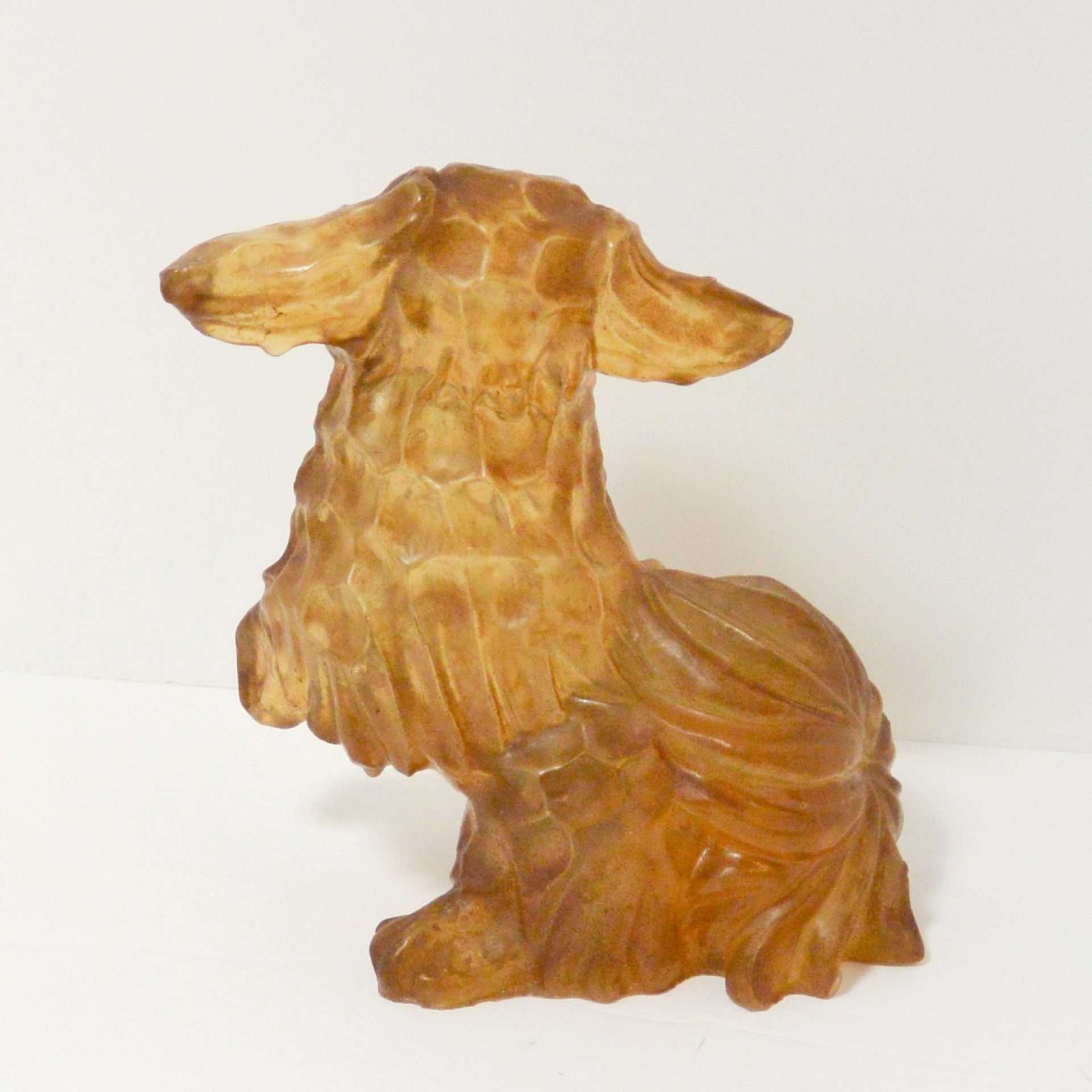 This wonderful Pekingese figurine was created by Dorothy Thorpe, a mid-century, American artist, who was most popular for her glassware creations. Measuring a full 6 1/2″ tall x 6″ long x 4″ wide, it is in excellent condition, and it still has most of its original foil label.