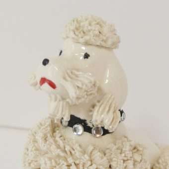 This vintage spaghetti poodle is ready to add a touch of “glam” to your vanity table, be added to your collection, or be tucked into mounds of frothy tissue and presented as a unique and very special gift!