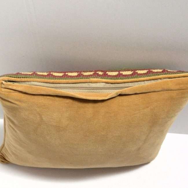 Measuring 8″ x 10″, it is trimmed in the same caramel-colored velvet that is used for the back.