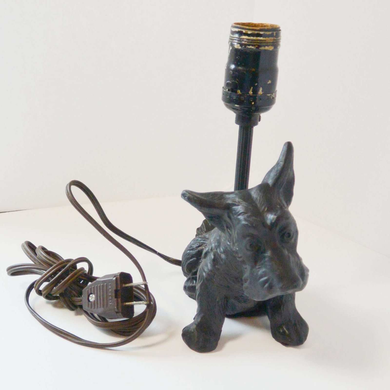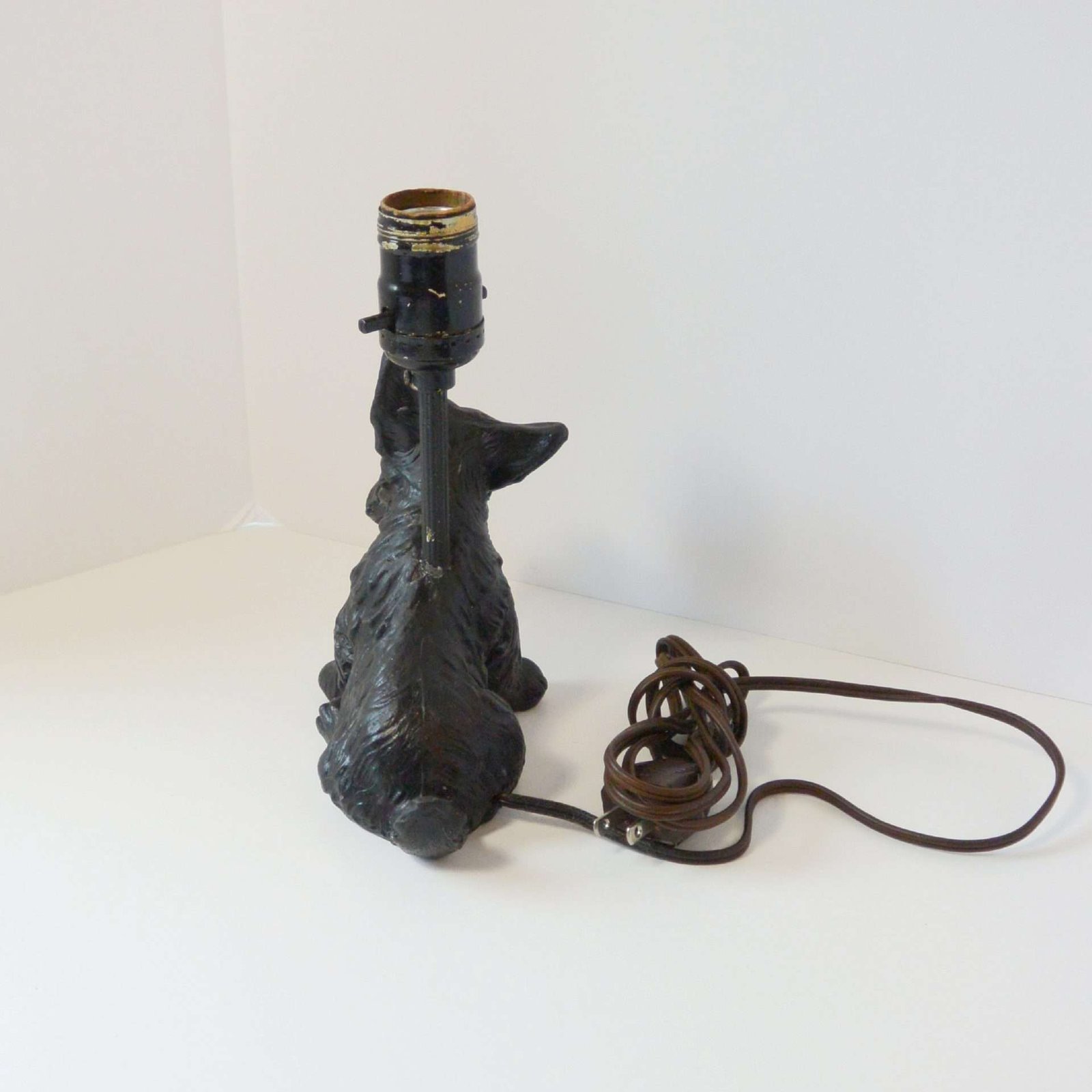 The base is a bronze-over-copper Scottie, that was at some point painted a high gloss black.