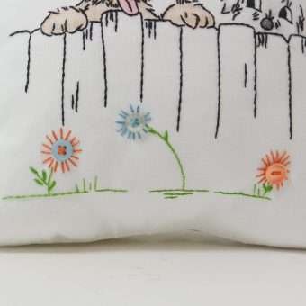 This adorable one-of-a-kind, hand embroidered pillow, would make the perfect decorative accent to your child’s nursery, or a very special gift for a new baby.