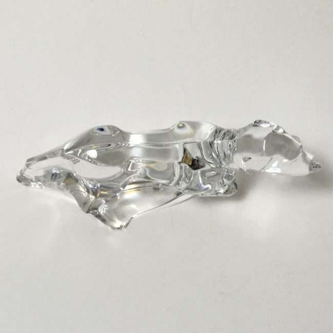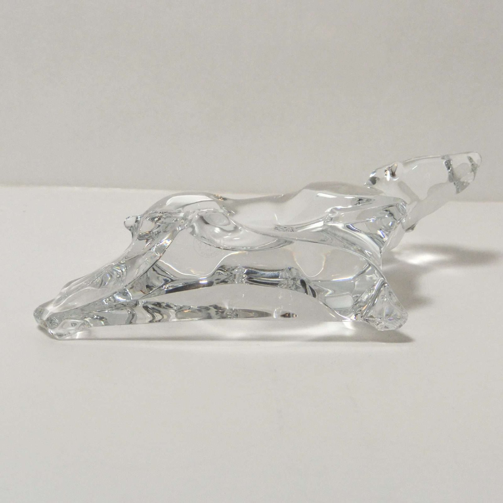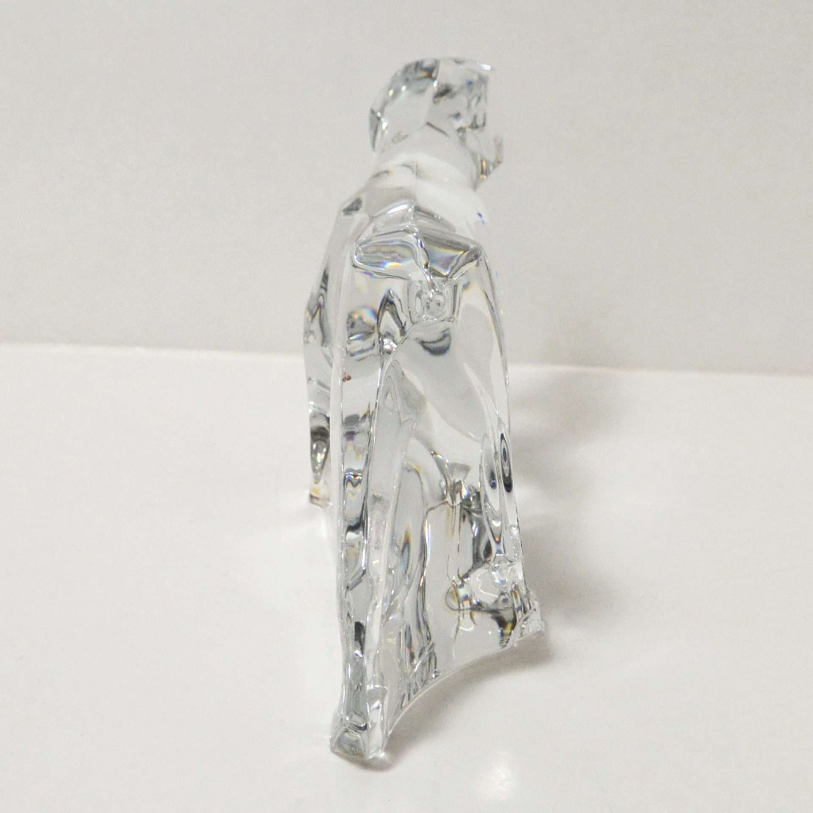 This elegant, crystal figurine was designed by B.Augst for Baccarat of France. He measures a full 4″ tall x 7″ long x 1 1/2″ wide, and he is in mint condition.