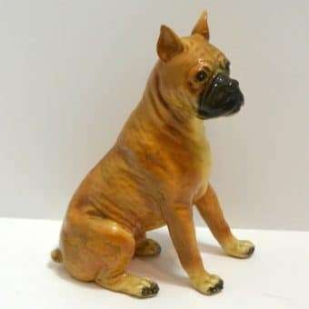 This wonderful adult Boxer dog was designed and produced by Mortens Studio. Seated at 6 1/2″ tall x 4 1/2″ long x 2 1/2″ wide. He has fabulous detailing.