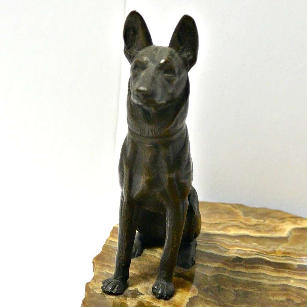 Bronze German Shepherd Dog on Marble Dish c.1930