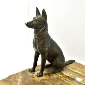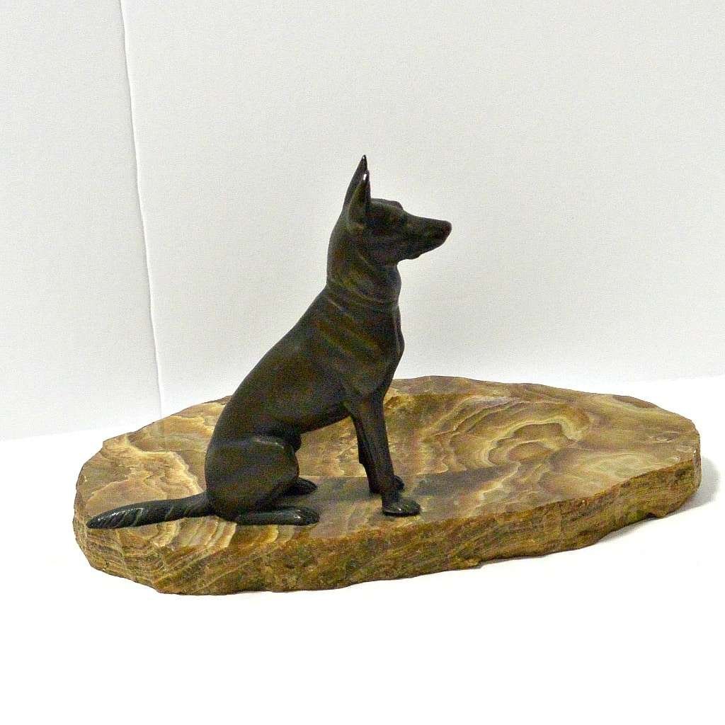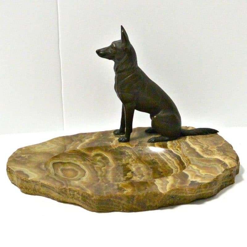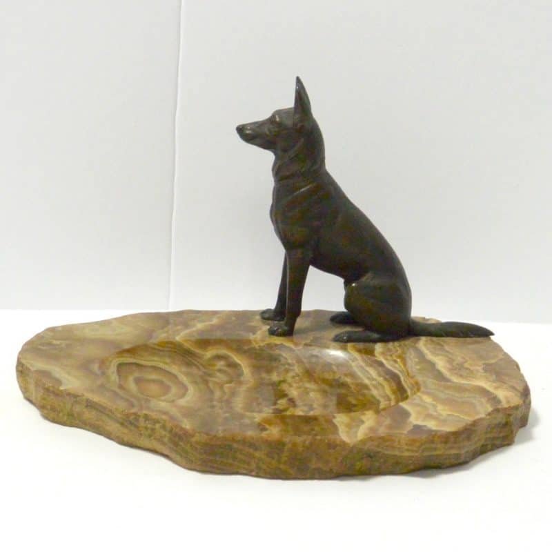 Bronze German Shepherd Dog on Marble Dish Tray c.1930