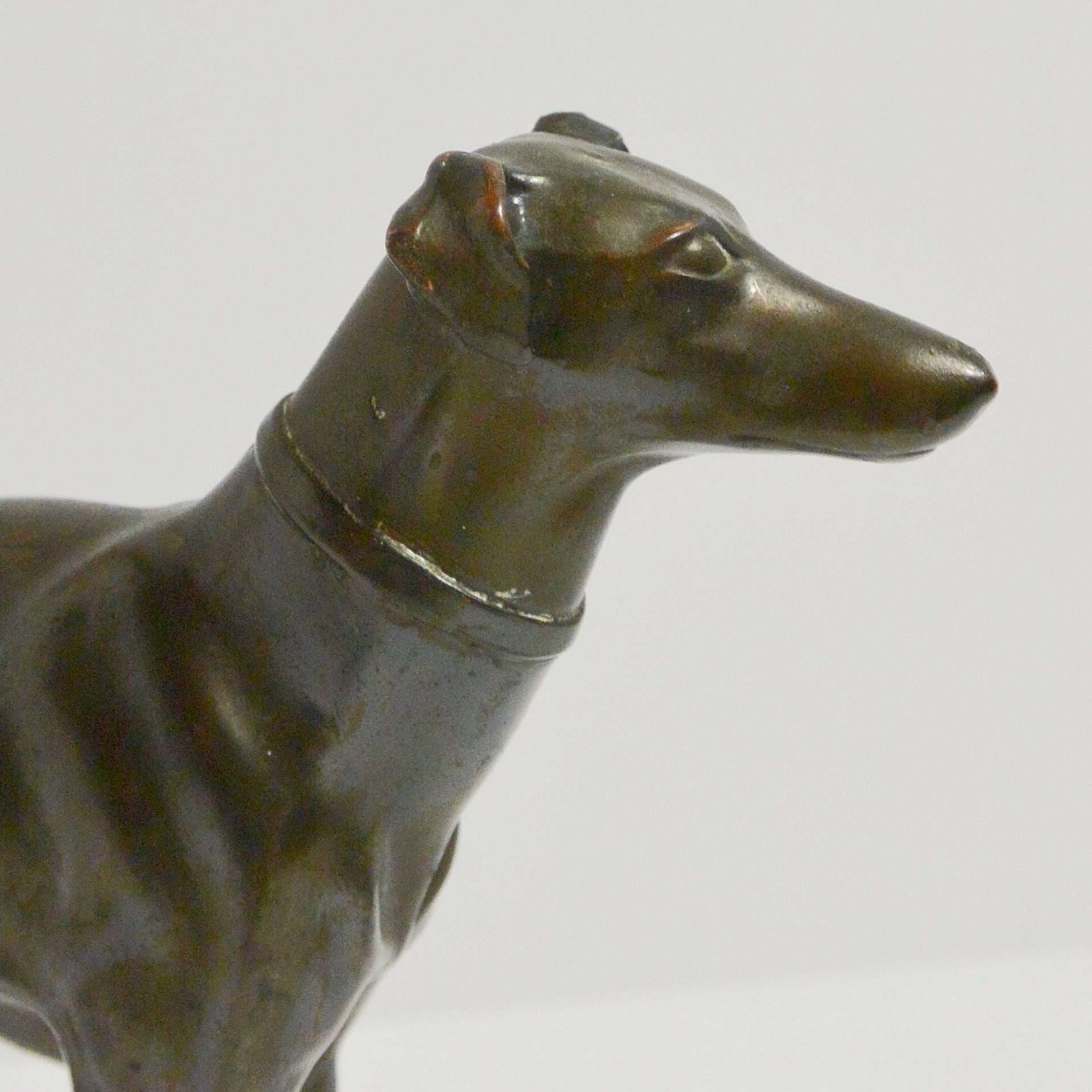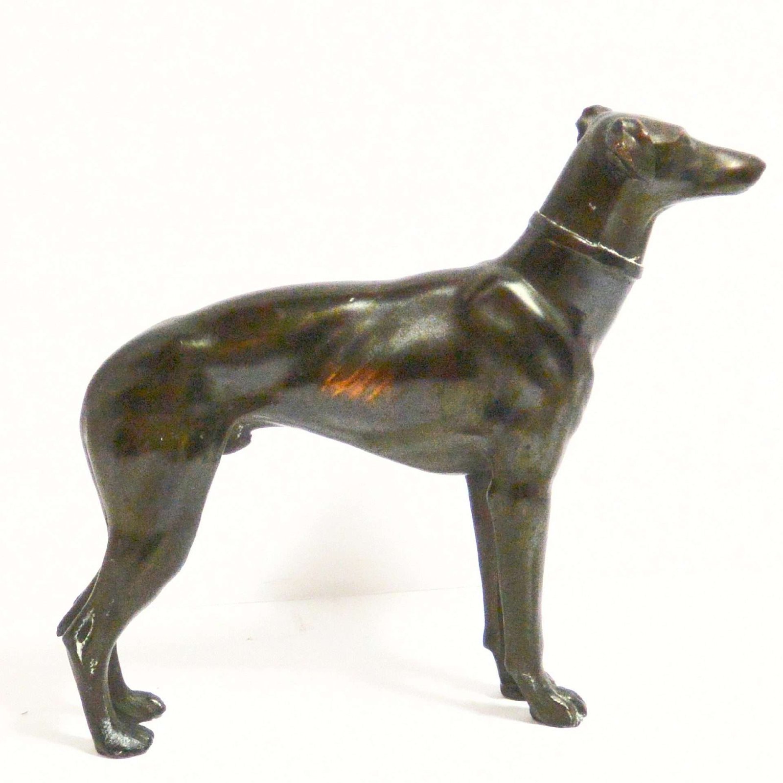 This bronze Greyhound dog figurine has exquisite detailing for its size.