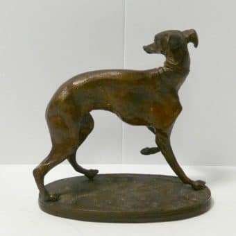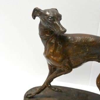 This extraordinary, small, bronze Greyhound/Whippet dog figurine was modeled by Pierre Jules Mene, France, (1810 – 1879) during the late 1800’s.