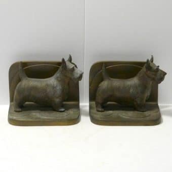 This very Art Deco pair of Scottish Terrier figurines are bookends. Their understated simplicity and elegance are true to the style of those made by Frankart during the 1920’s through the 1930’s.