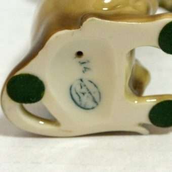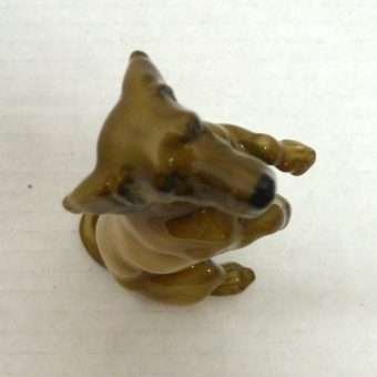 She has deep, soulful eyes and such a solemn expression that you will just want to reach out and give her the attention she is begging for. She is in excellent condition, and she measures 5″ tall x 2″ long x 1 1/2″ wide. She has a gorgeous, high gloss finish, and is a soft taupe color with charcoal shading.