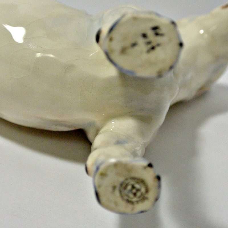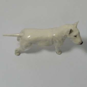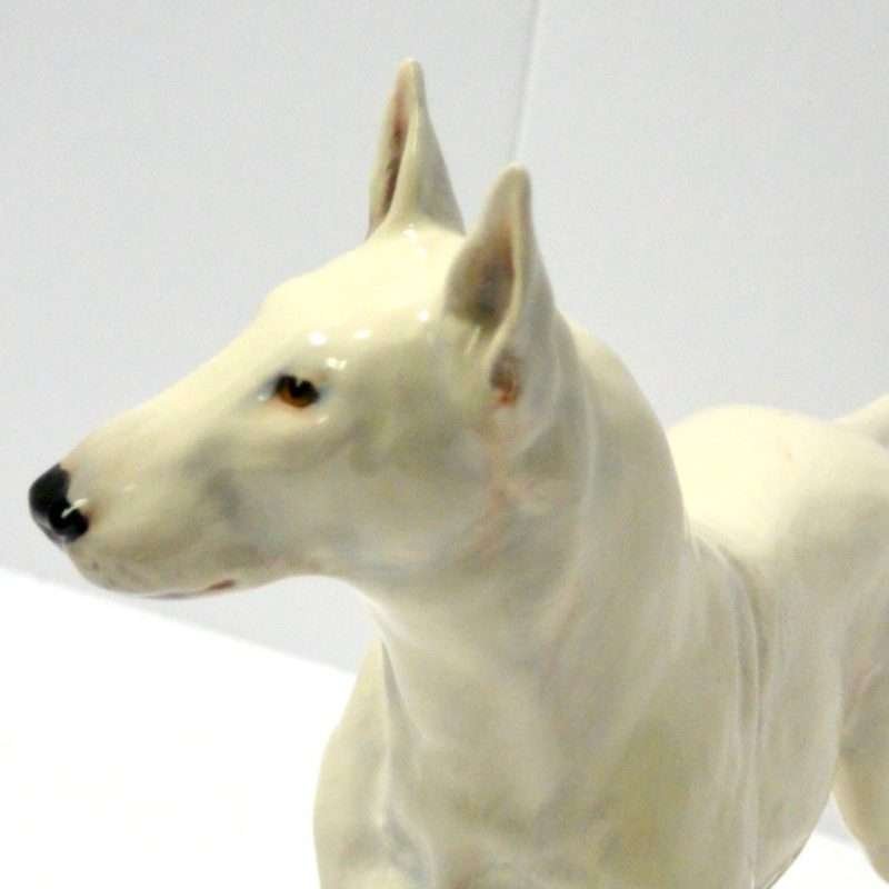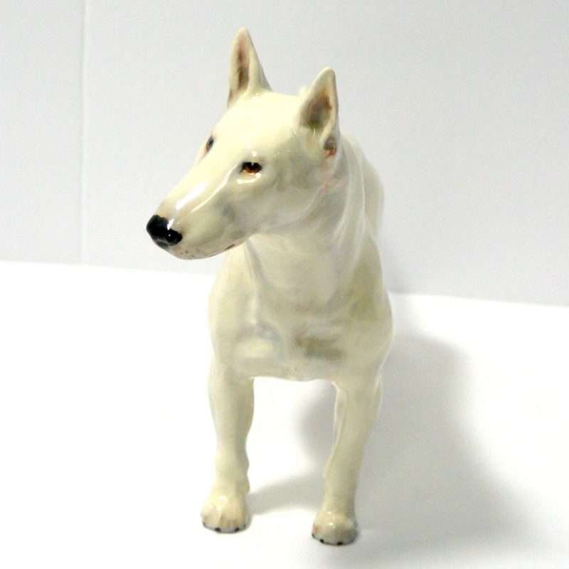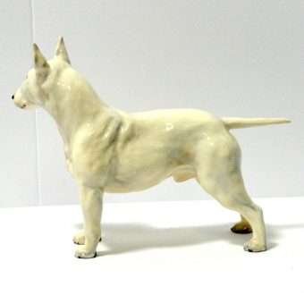 Every ounce of the strength and power of this amazing breed is captured in this porcelain figurine of a Bull Terrier. Made by Royal Doulton and designed by Frederick Daws.