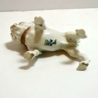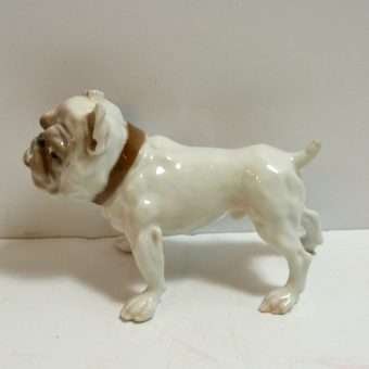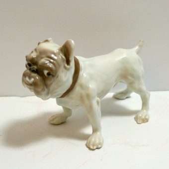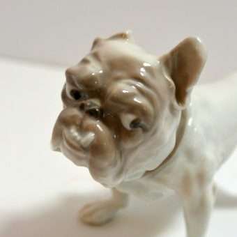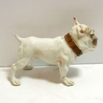 This porcelain Bulldog is such a character, it is hard to stop looking at him! His “snaggle-tooth” grin, “pop” eyes and “droopy” jowls, all combine to give him a look that is both comical and engaging.