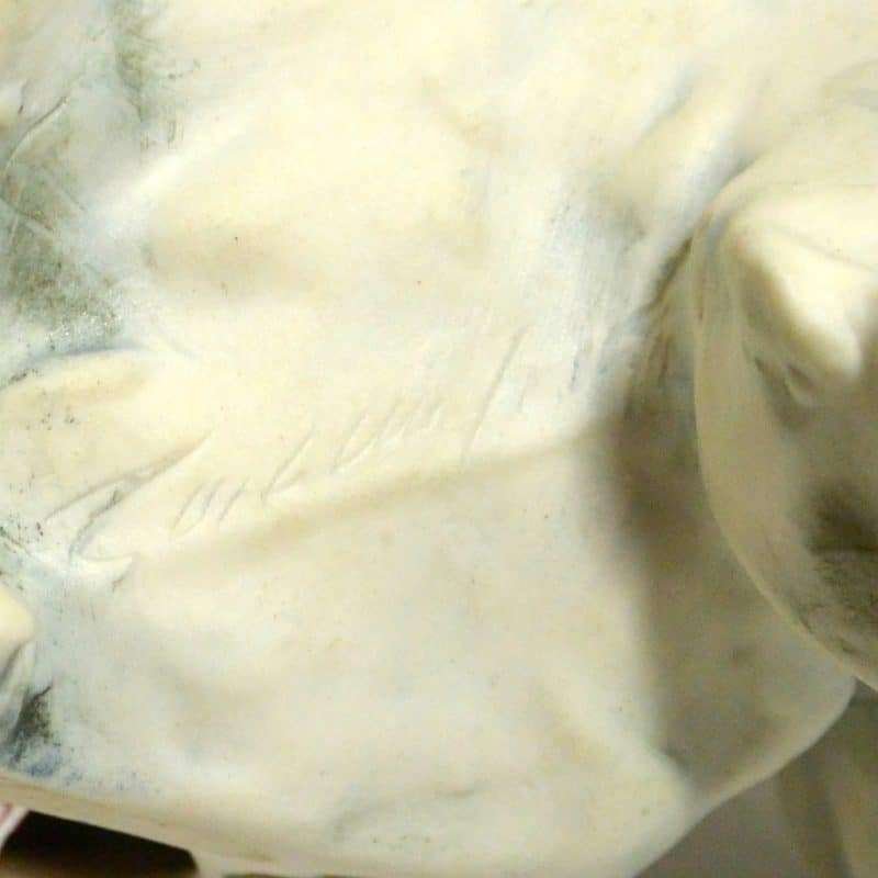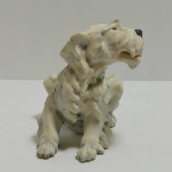 It has an impressed signature of the artist on the bottom. As always with a Cacciapuoti dog, this pup has a very expressive face and posture, as well as a wildly sculptural quality to its fur. We like to refer to it as “wildly animated” as though the dog was caught and frozen in motion.