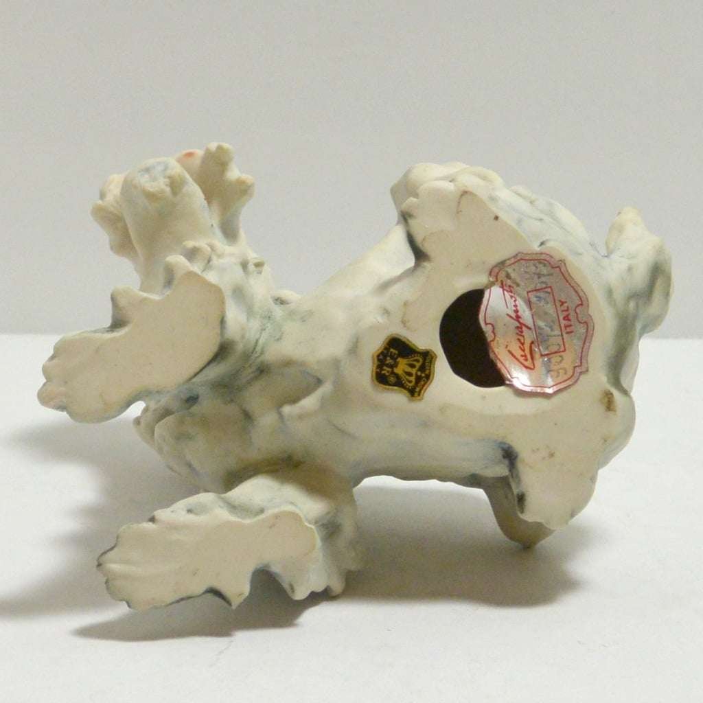 It has an impressed signature of the artist on the bottom. As always with a Cacciapuoti dog, this pup has a very expressive face and posture, as well as a wildly sculptural quality to its fur. We like to refer to it as “wildly animated” as though the dog was caught and frozen in motion.