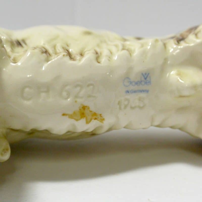 Standing a full 6″ tall x 9 1/2″ long x 2 1/2″ wide, he is in excellent condition and marked on his underside with the Goebel mark that dates him between 1972 to 1979.