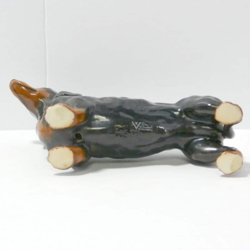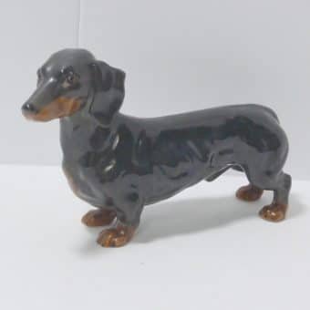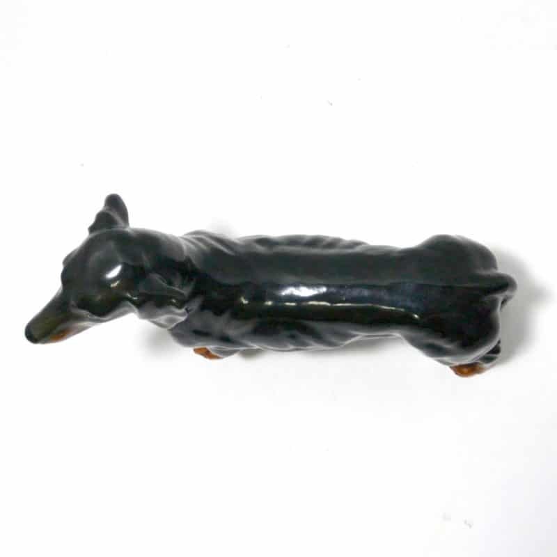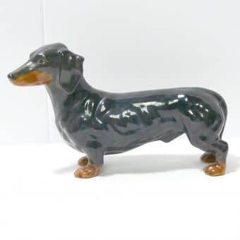 Looking just like his “flesh & fur” counterpart, this exquisite Goebel Short-Haired Dachshund dog figurine would be the perfect addition to any Goebel or Dachshund dog collection. Standing 3 3/4″ tall x 6″ long x 1 3/4″ wide, he is in excellent condition and marked with the Goebel bee that dates him between 1968 to 1979.