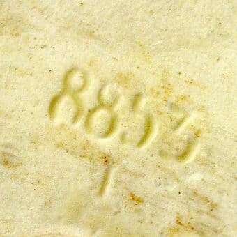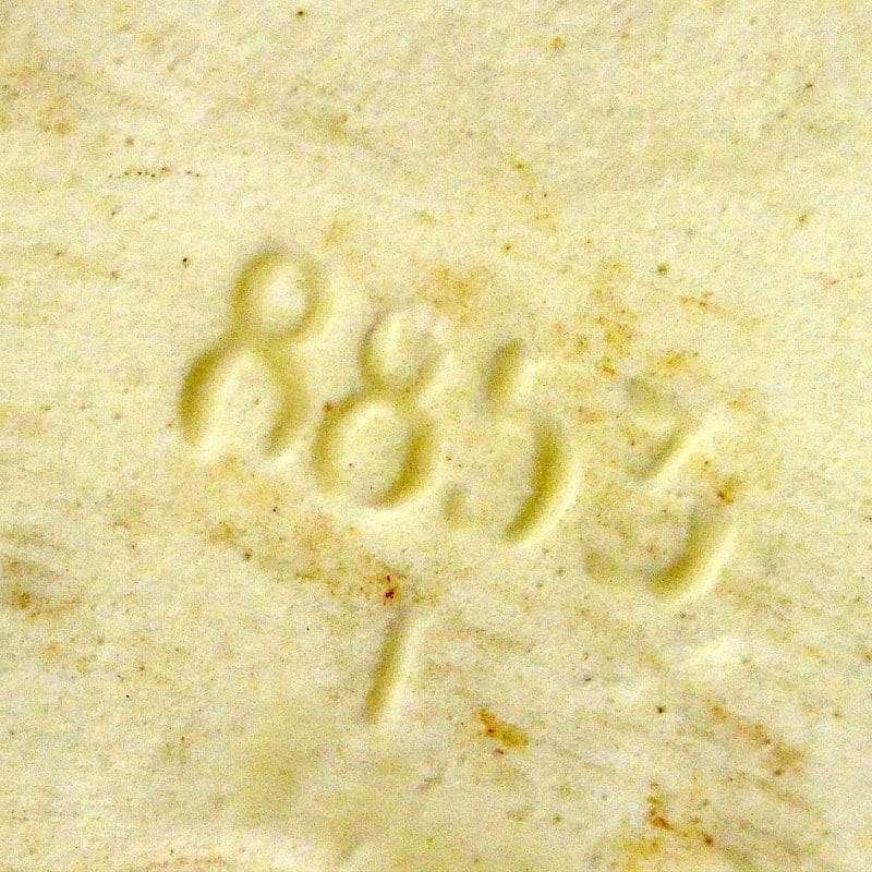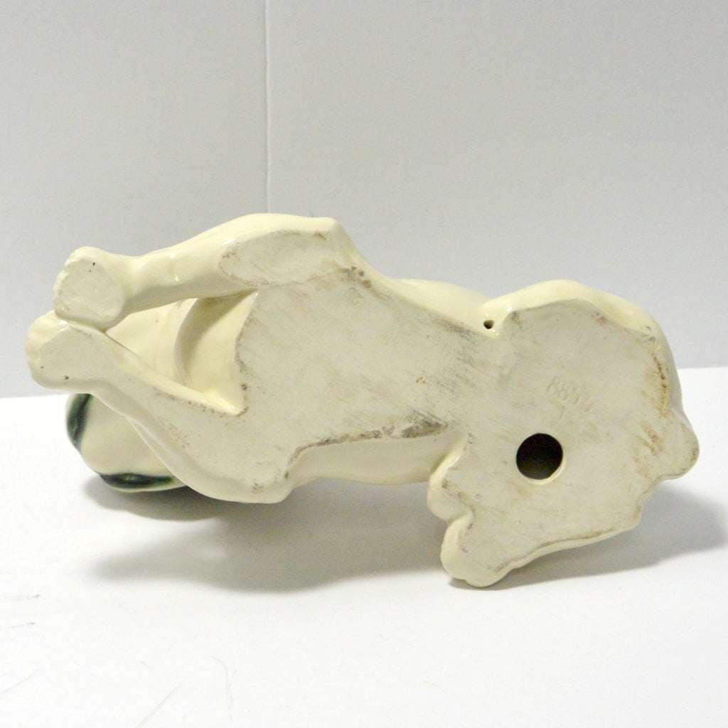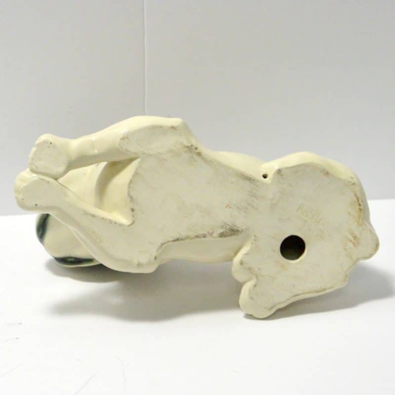 Measuring 5″ tall x 9″ long x 4 1/2″ wide, he is in excellent condition. He is not marked, but he does have numbers incised on his underside.
