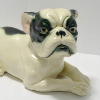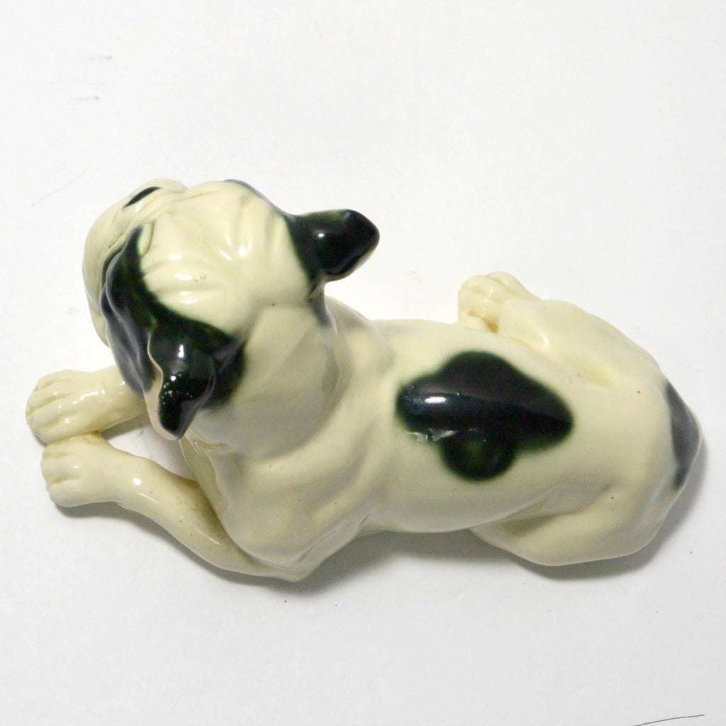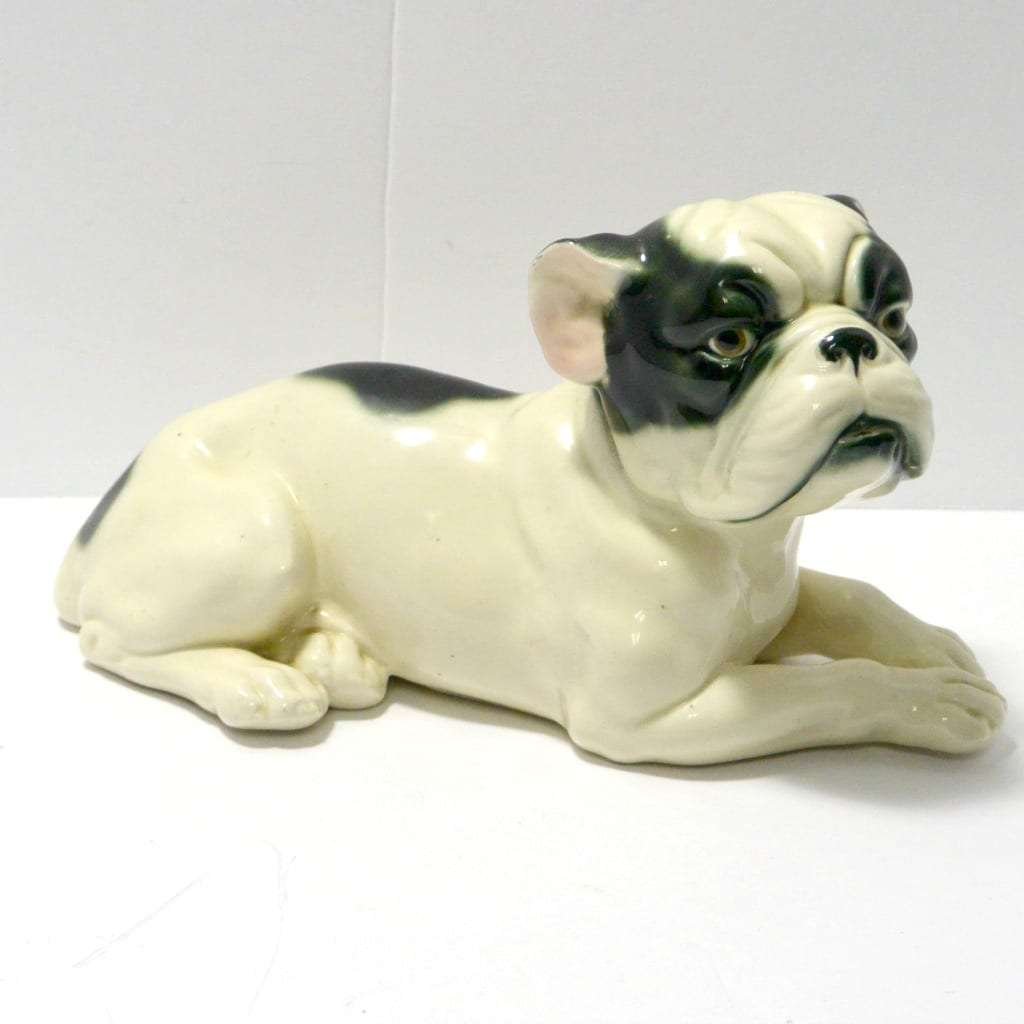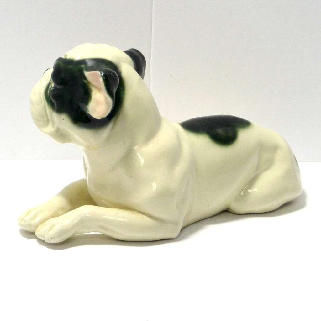 This is an old, hand-painted, porcelain Boston Terrier figurine. Boston Terrier enthusiasts know that many are quite dapper in appearance, and sometimes they look like grouchy old men. Either way, we just love them.