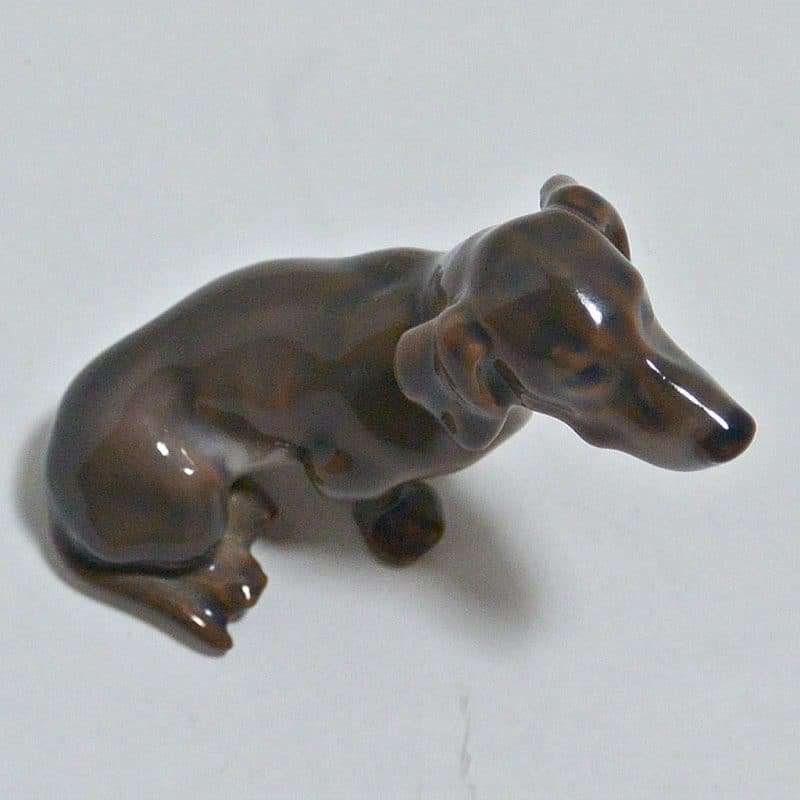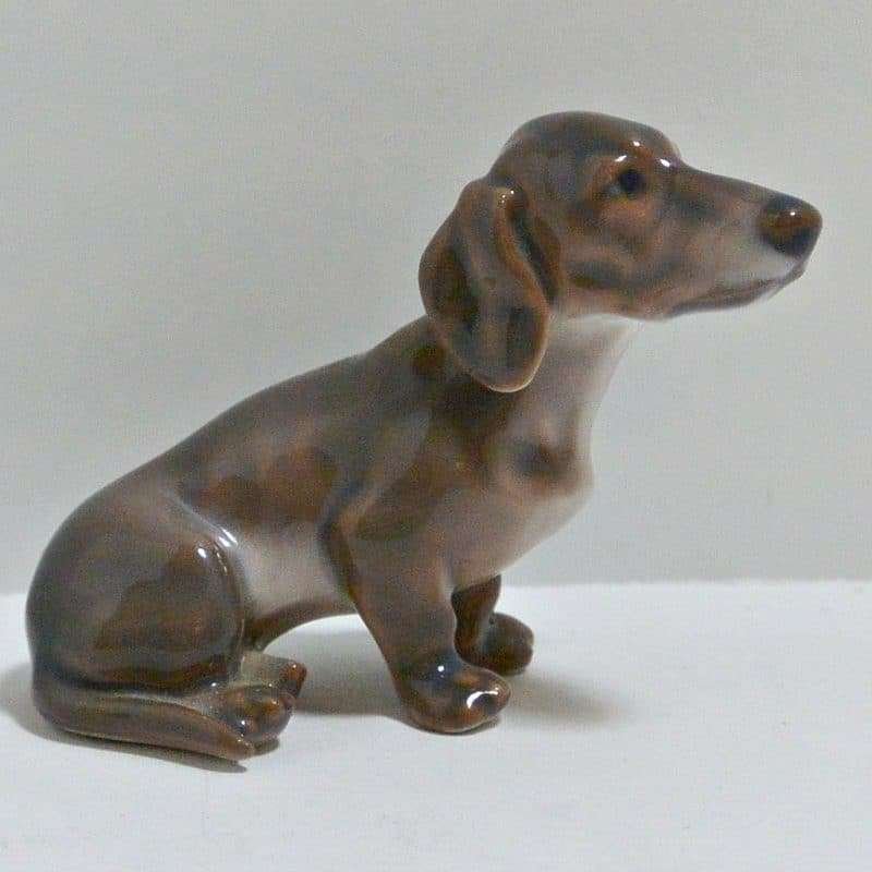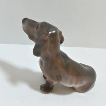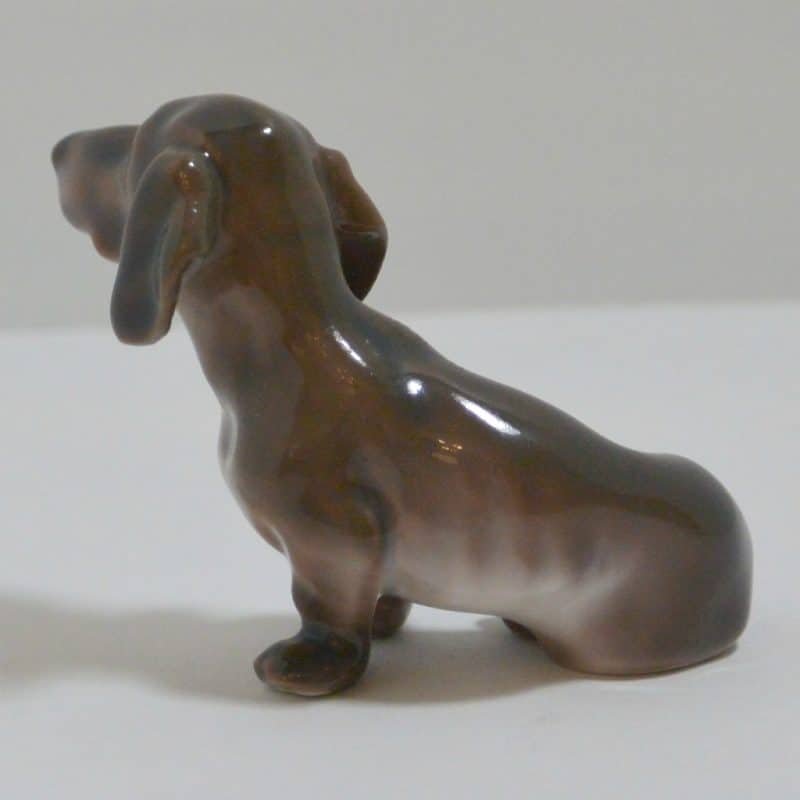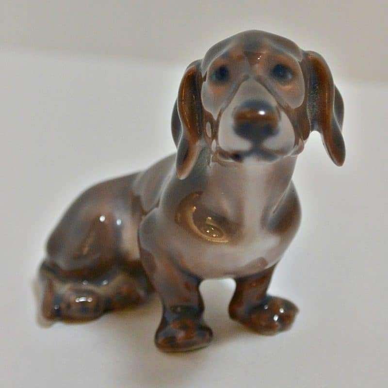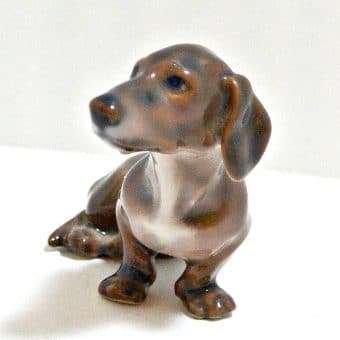Small but exquisite, this Dachshund figurine shows off the talents of Dahl Jensen at his very best. At 2″ tall x 2 1/2″ long x 1 1/4″ wide, Dahl Jensen has managed to capture every ounce of sweetness and personality that makes this wonderful breed so very popular.