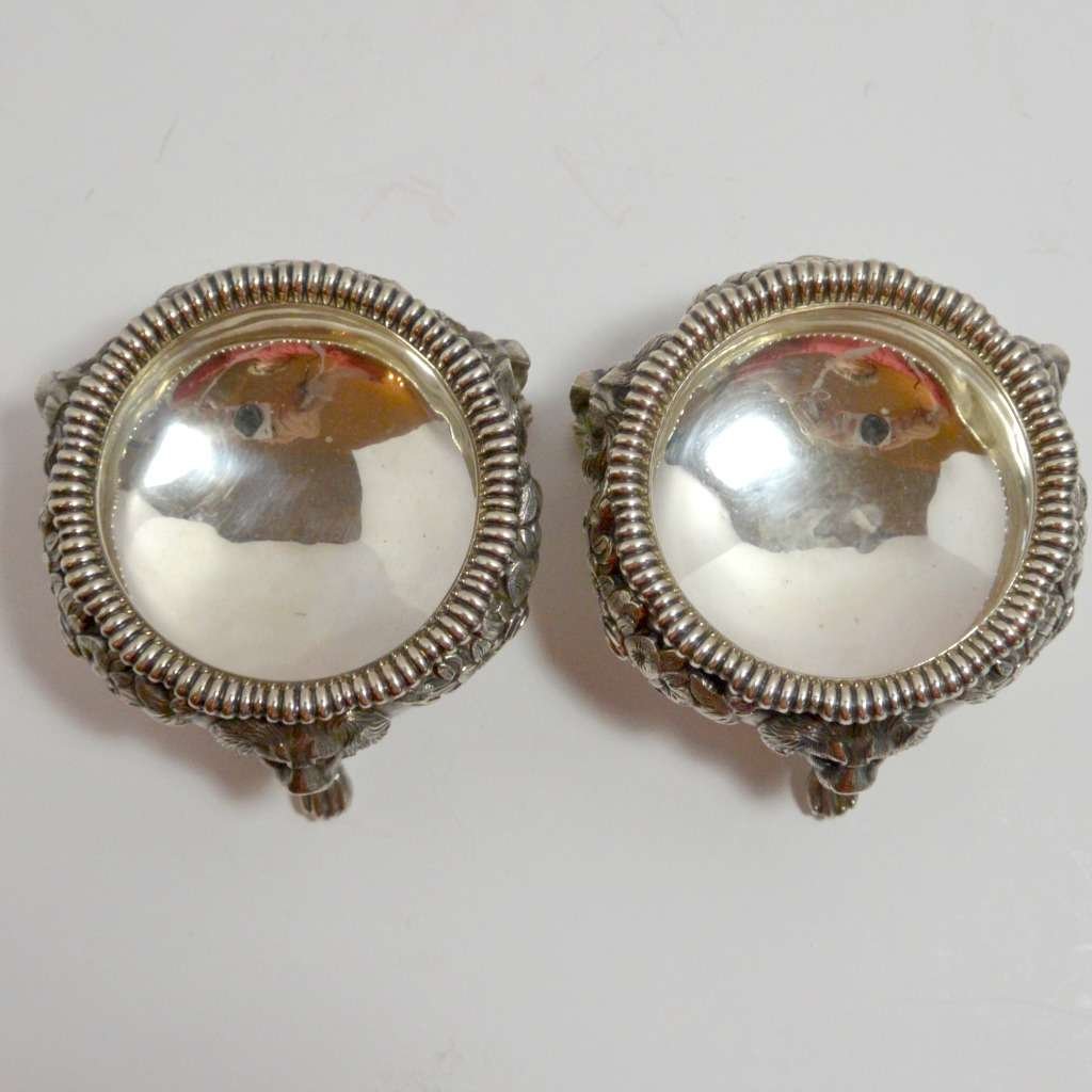 Antique English Sterling Silver Pair of Open Master Salts George II Lion’s Head 1810