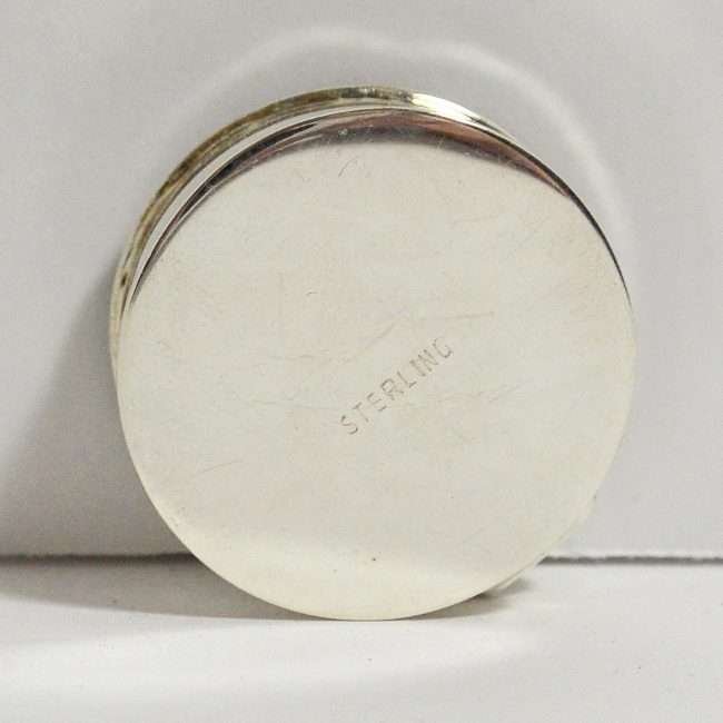 Measuring 1 1/8″ in diameter, and 1/2″ deep, it is in excellent condition, with only some very slight scratches on the bottom.