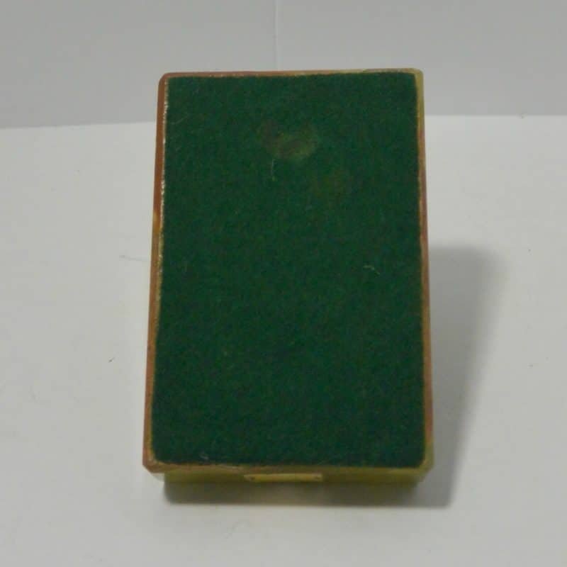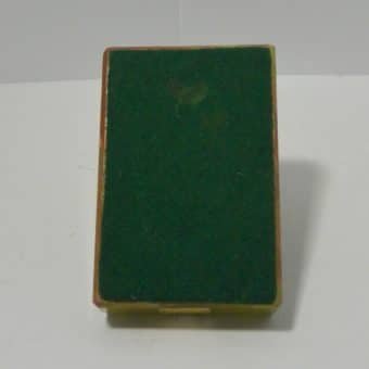 If you love Art Deco decorative pieces, this elegant, onyx pin tray should be part of your collection. The rectangular base is 3′ x 4 1/2″, and the sweet Borzoi dog with it’s gorgeous, sweeping tail is 2 1/4″ tall.